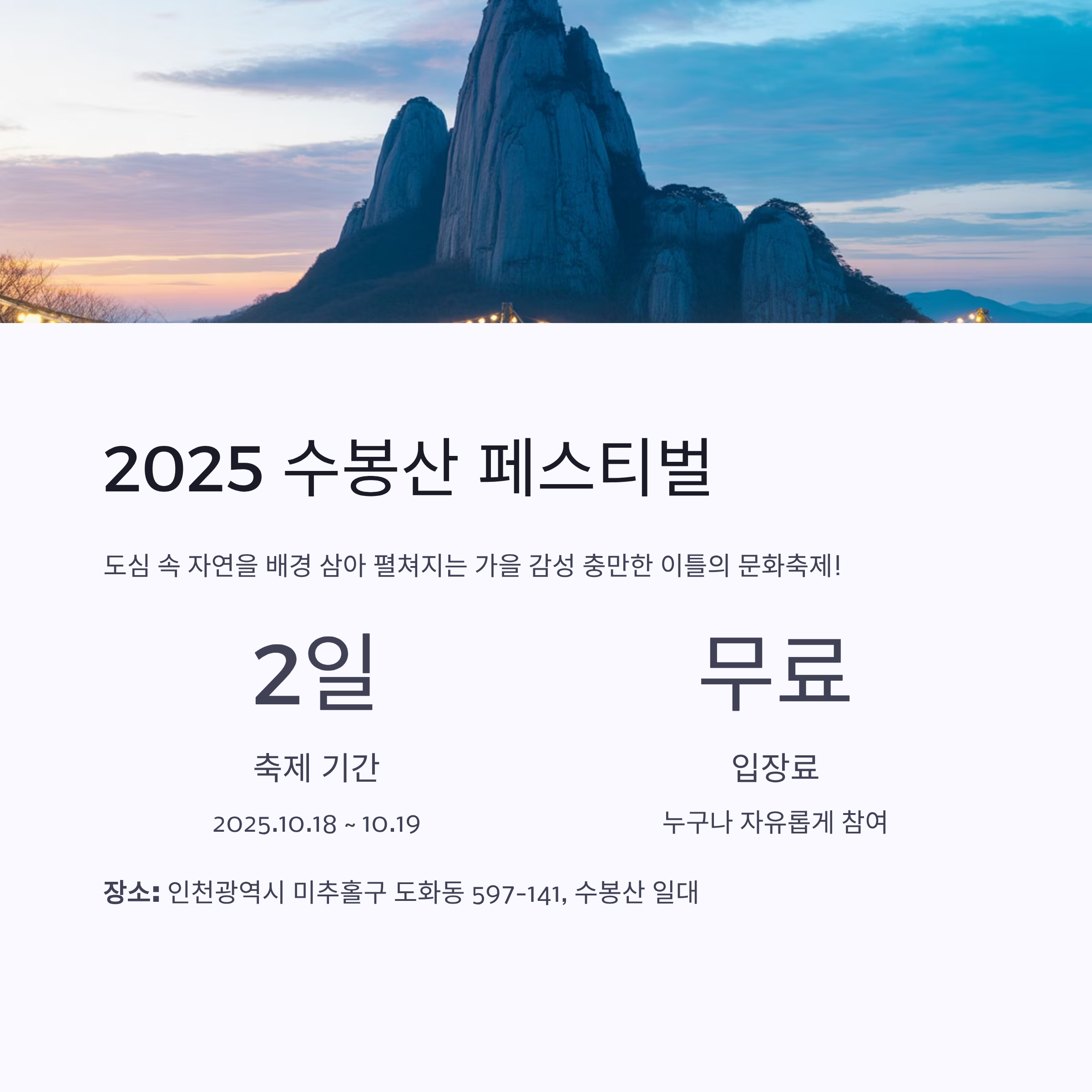 | 축제명 | 2025 수봉산 페스티벌 |