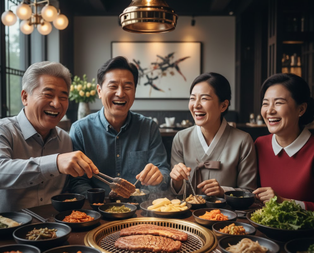 부모님과 함께 맛있는 음식을 먹으며 나누는