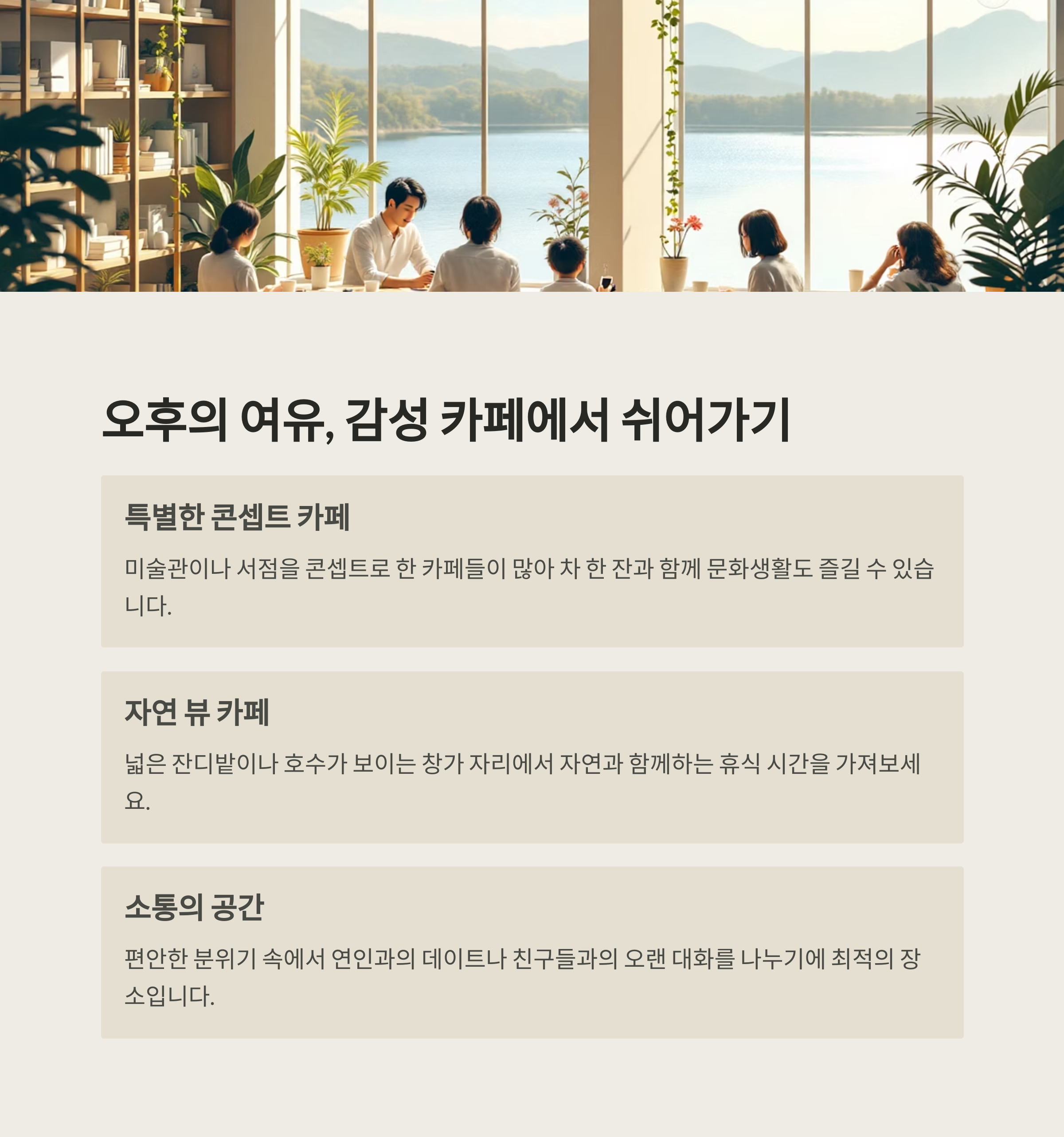 산책 후엔 공원 근처 감성 카페에서 쉬어가는 게 좋습니다.