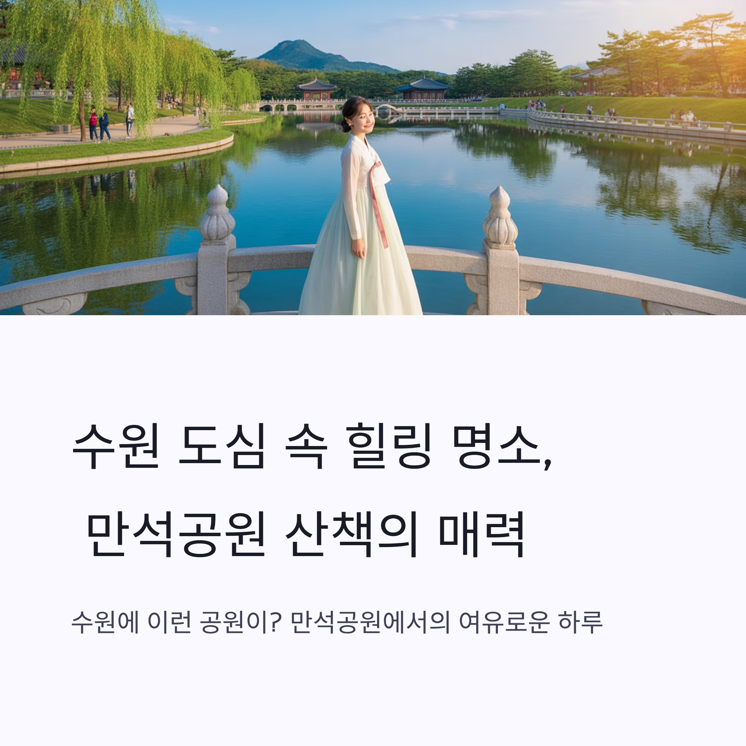 수원시 장안구에 위치한 만석공원은 도심 속에서 자연과 여유를 동시에 느낄 수 있는 산책 명소입니다. 복잡한 일상에서 벗어나 조용한 호수와 정원, 그리고 걷기 좋은 산책로가 어우러진 이곳은 가족, 연인, 친구 모두에게 인기 있는 휴식처로 사랑받고 있습니다. 오늘은 만석공원의 매력을 낱낱이 소개해드릴게요.