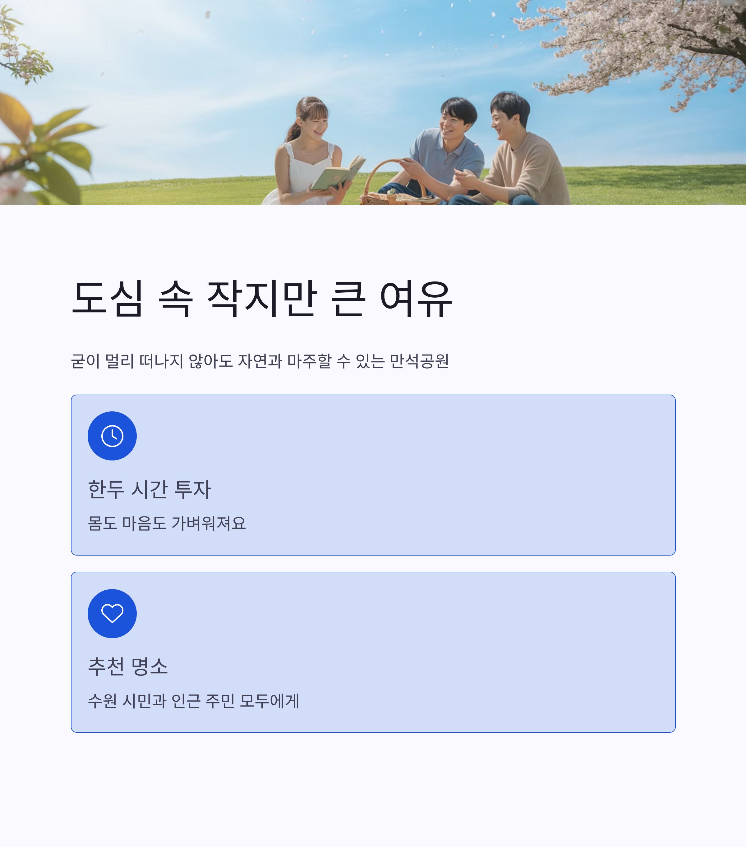수원 시민이라면 물론, 인근 지역 주민들에게도 꼭 추천하고 싶은 산책 명소입니다.
