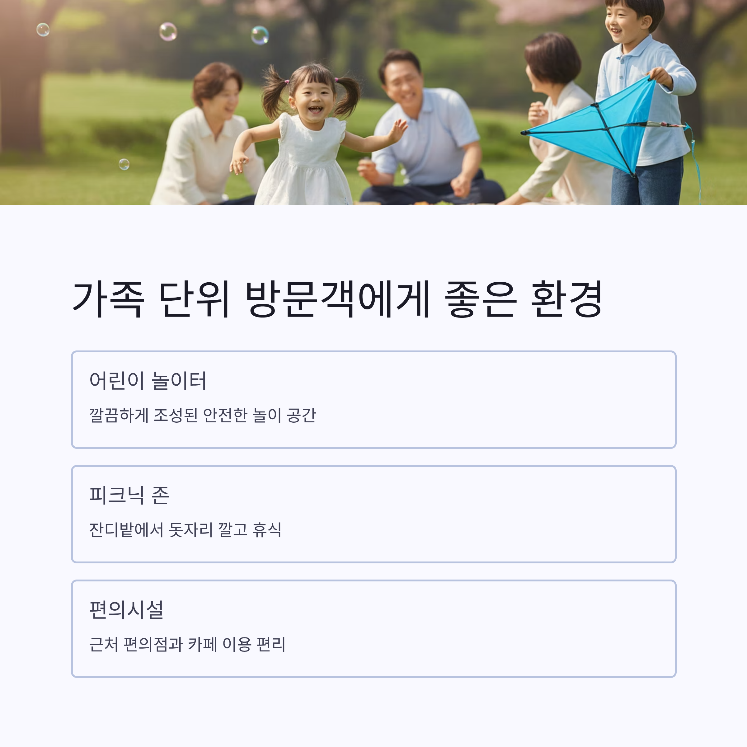 잔디밭에서 돗자리 깔고 피크닉 즐기는 가족들도 많아요.