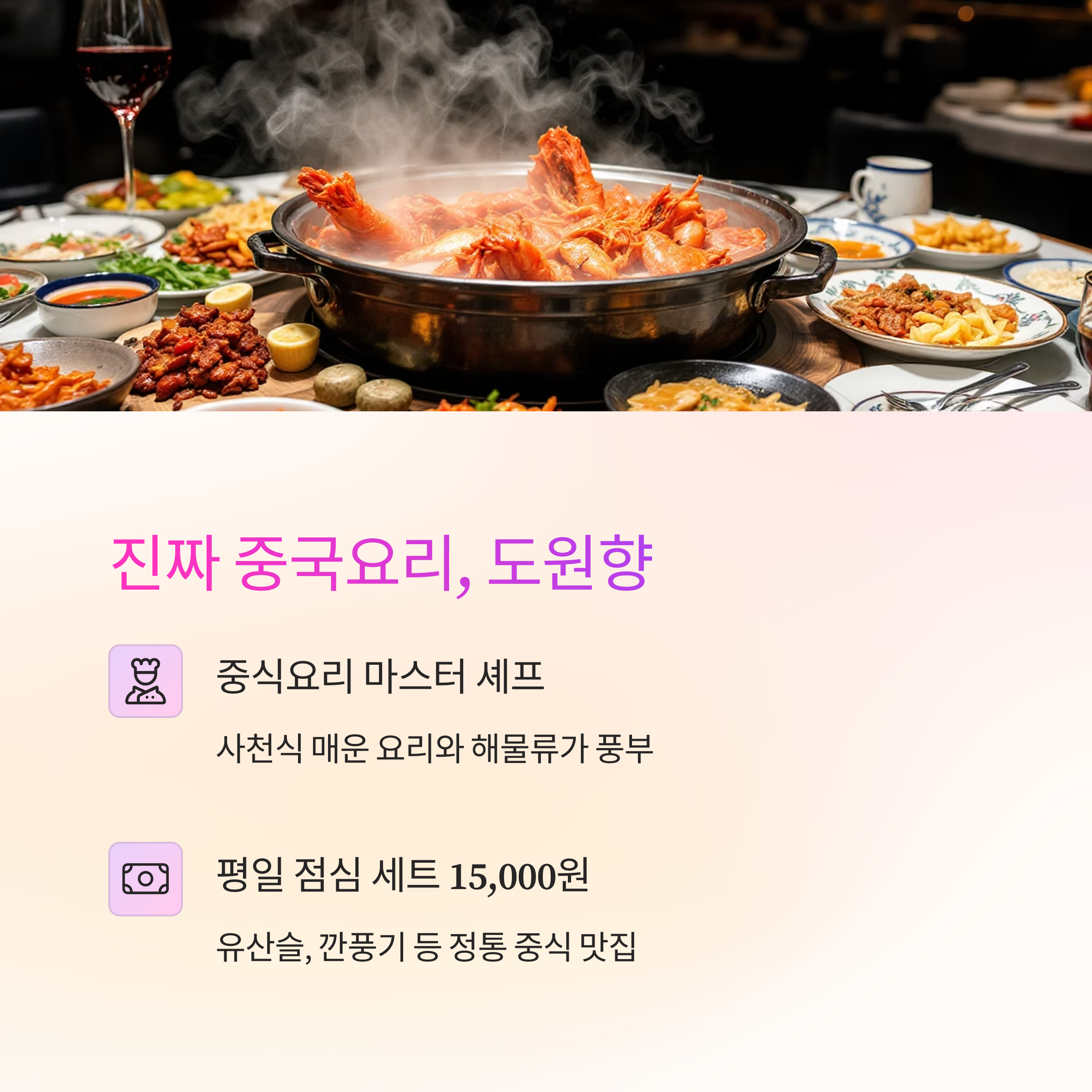 - 중식요리 마스터 셰프가 직접 조리