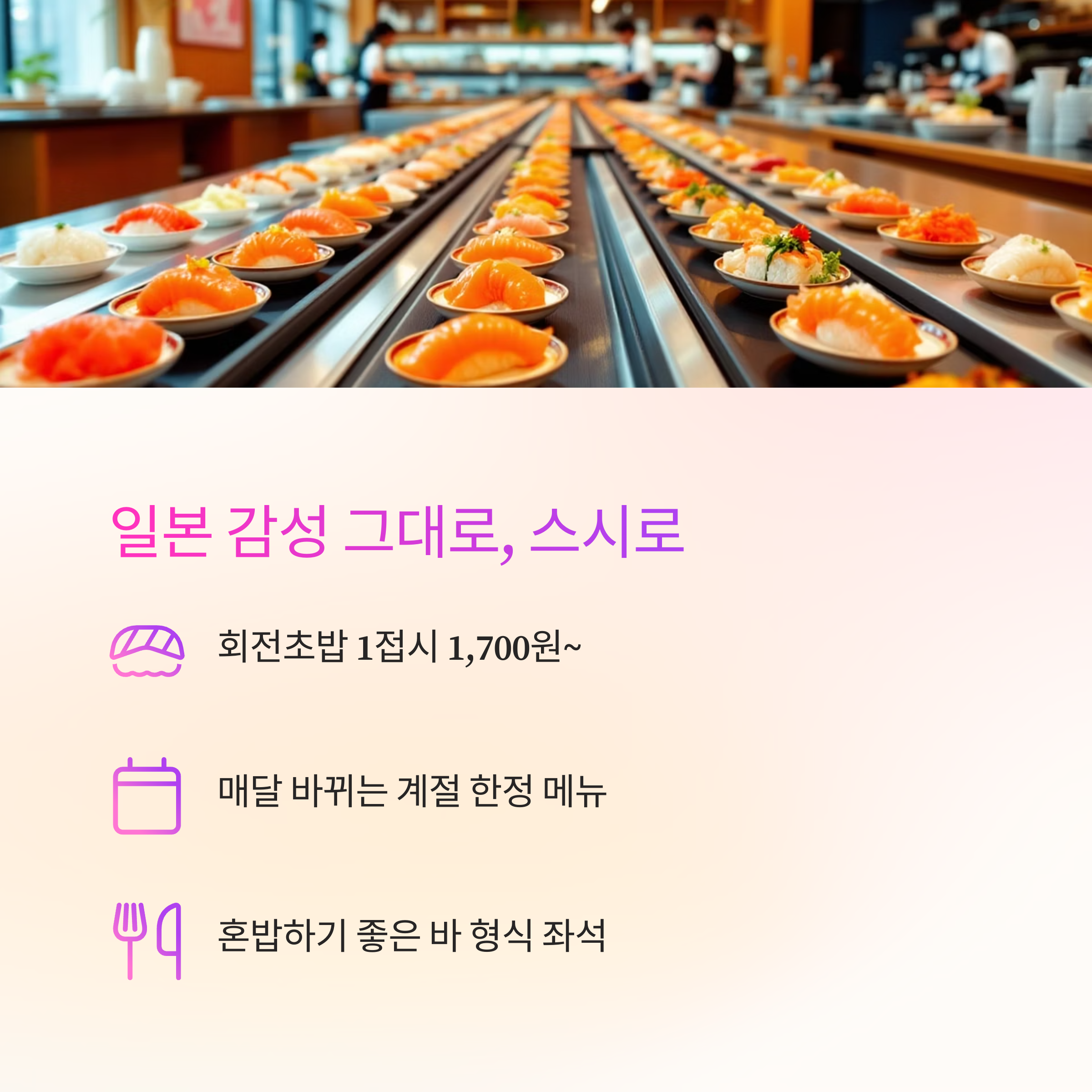- 회전초밥이 기본 1 접시 1,700원부터
