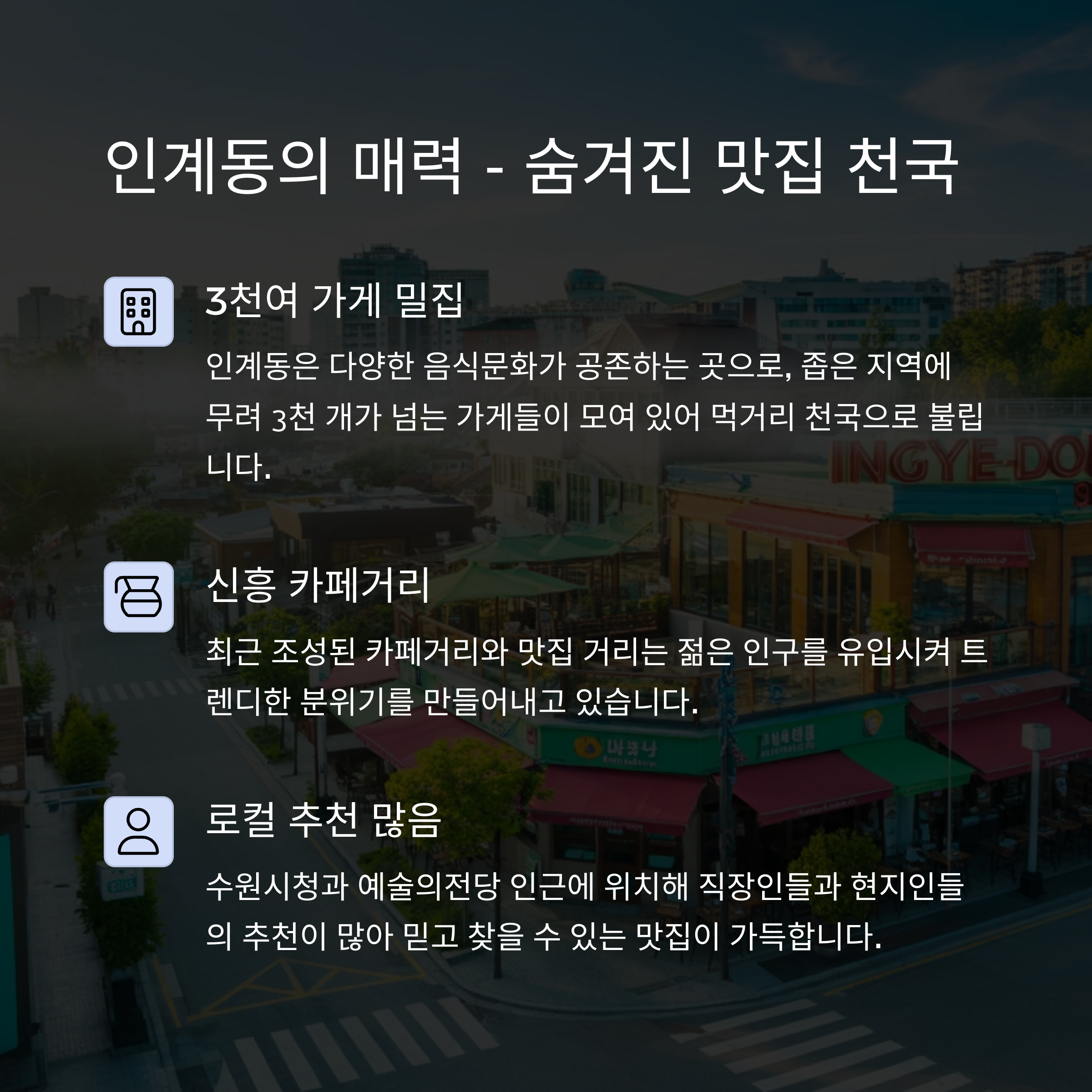 인계동은 수원의 숨겨진 보석 같은 곳입니다
