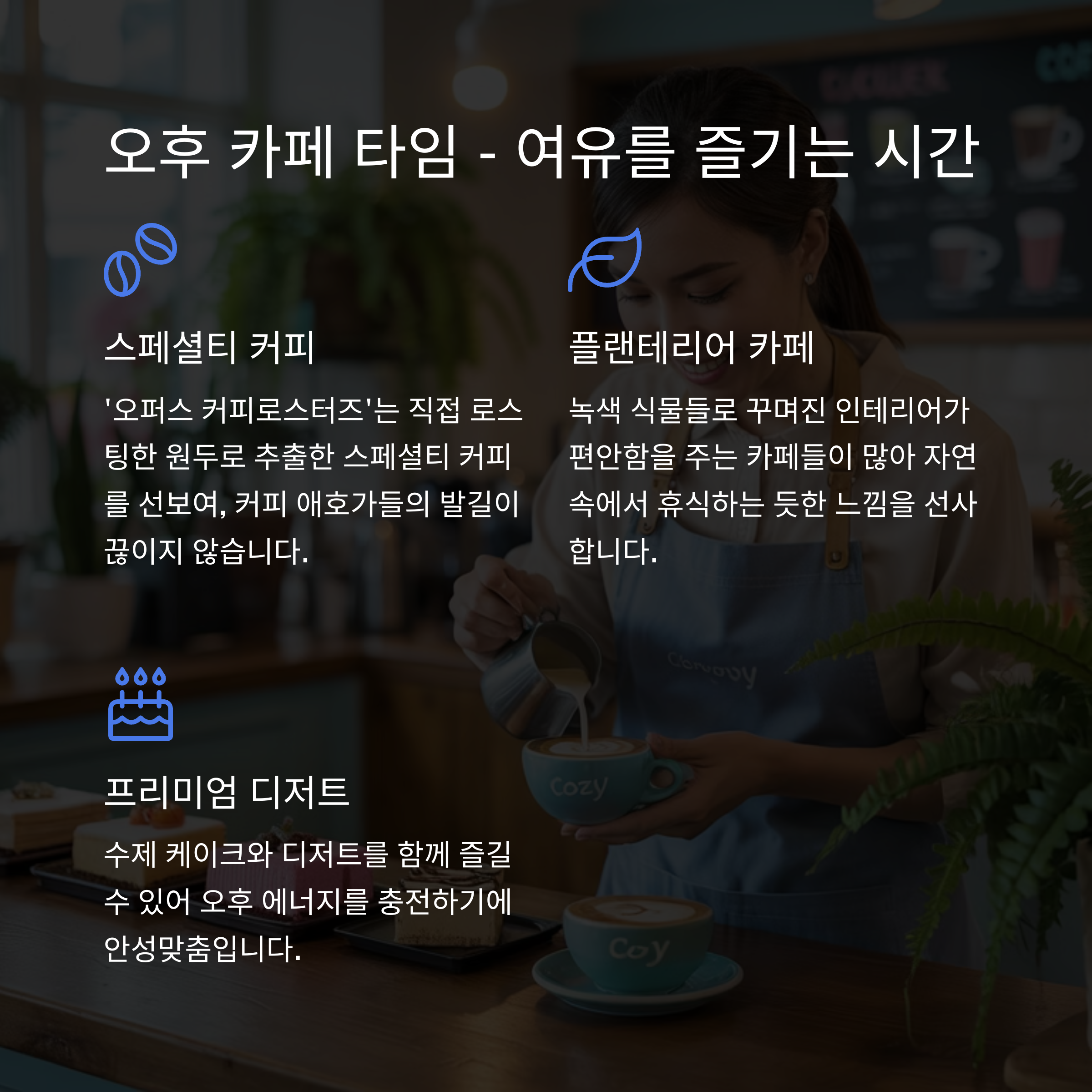 점심 식사 후엔 분위기 좋은 카페에서 잠시 휴식을 취해보세요