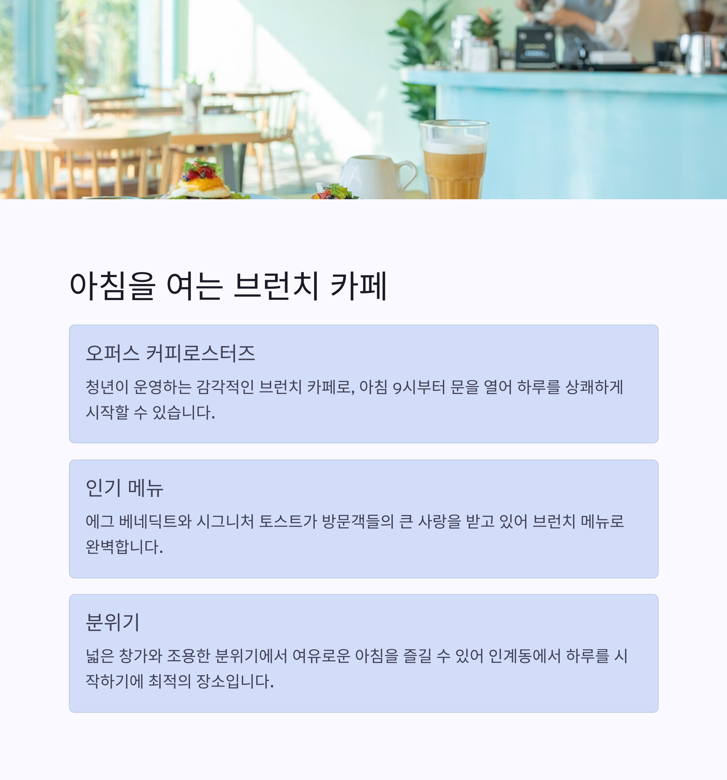 감성 가득한 인테리어와 신선한 메뉴로 기분 좋은 하루를 열어보세요