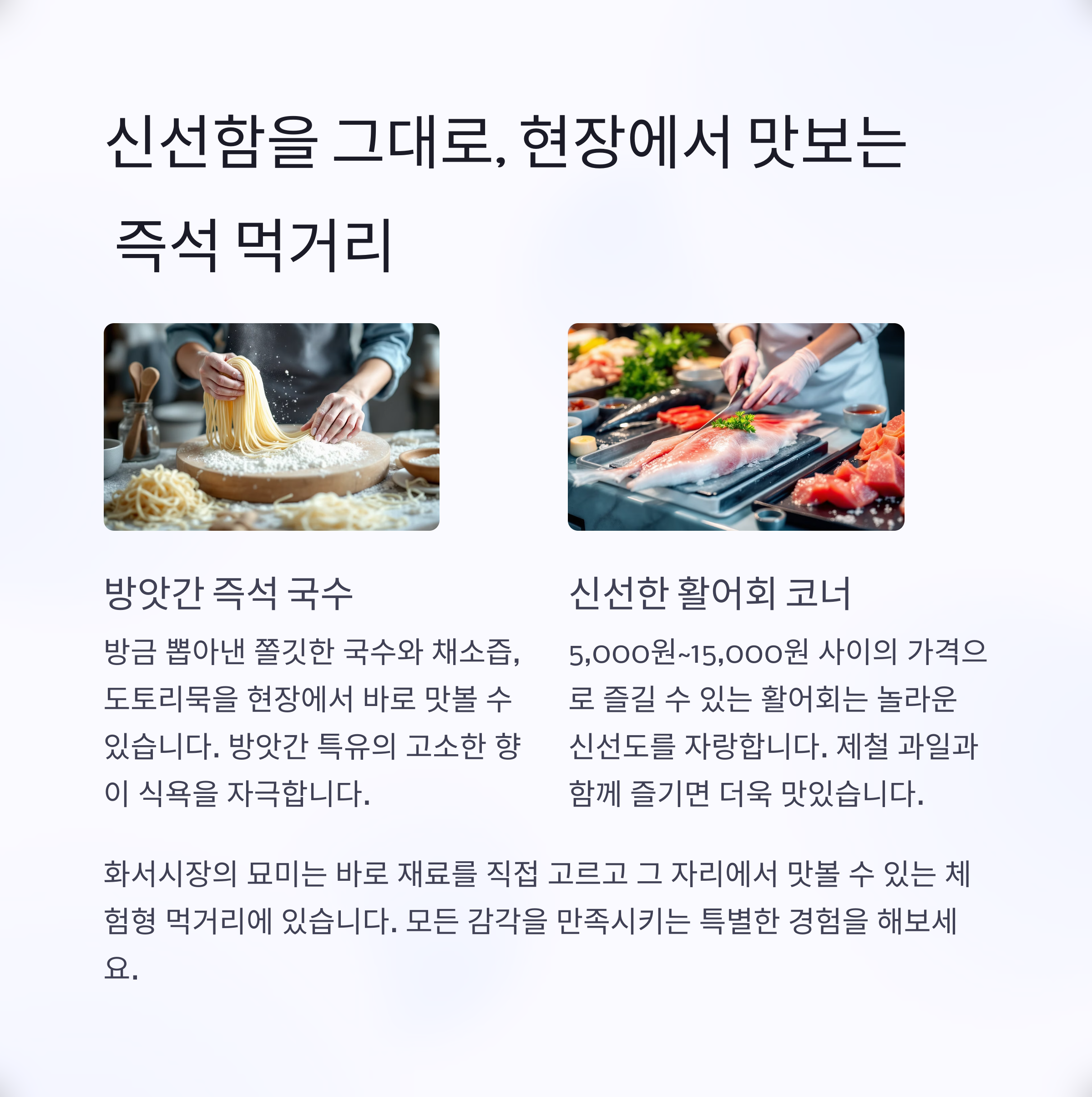 6. 신선한 재료로 즐기는 현장 먹거리