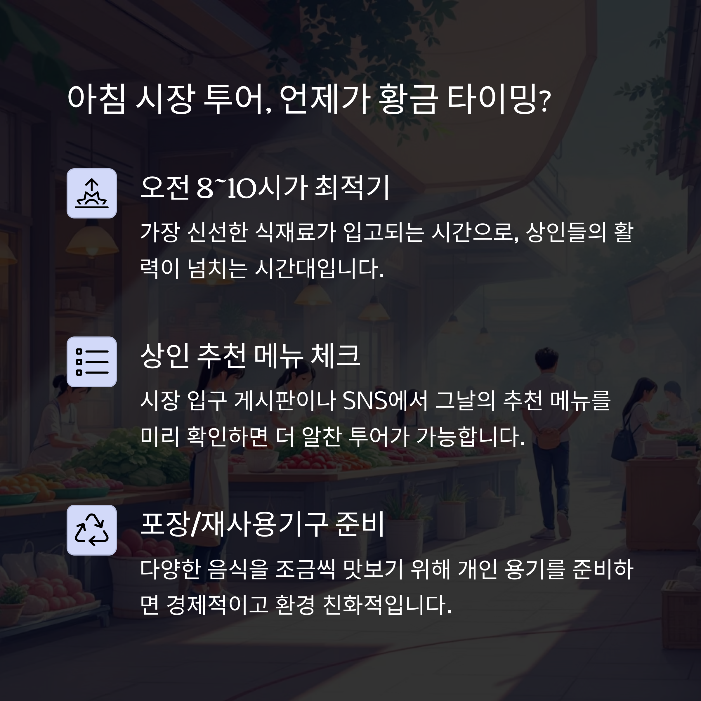 2. 아침 시장 투어 시작 팁