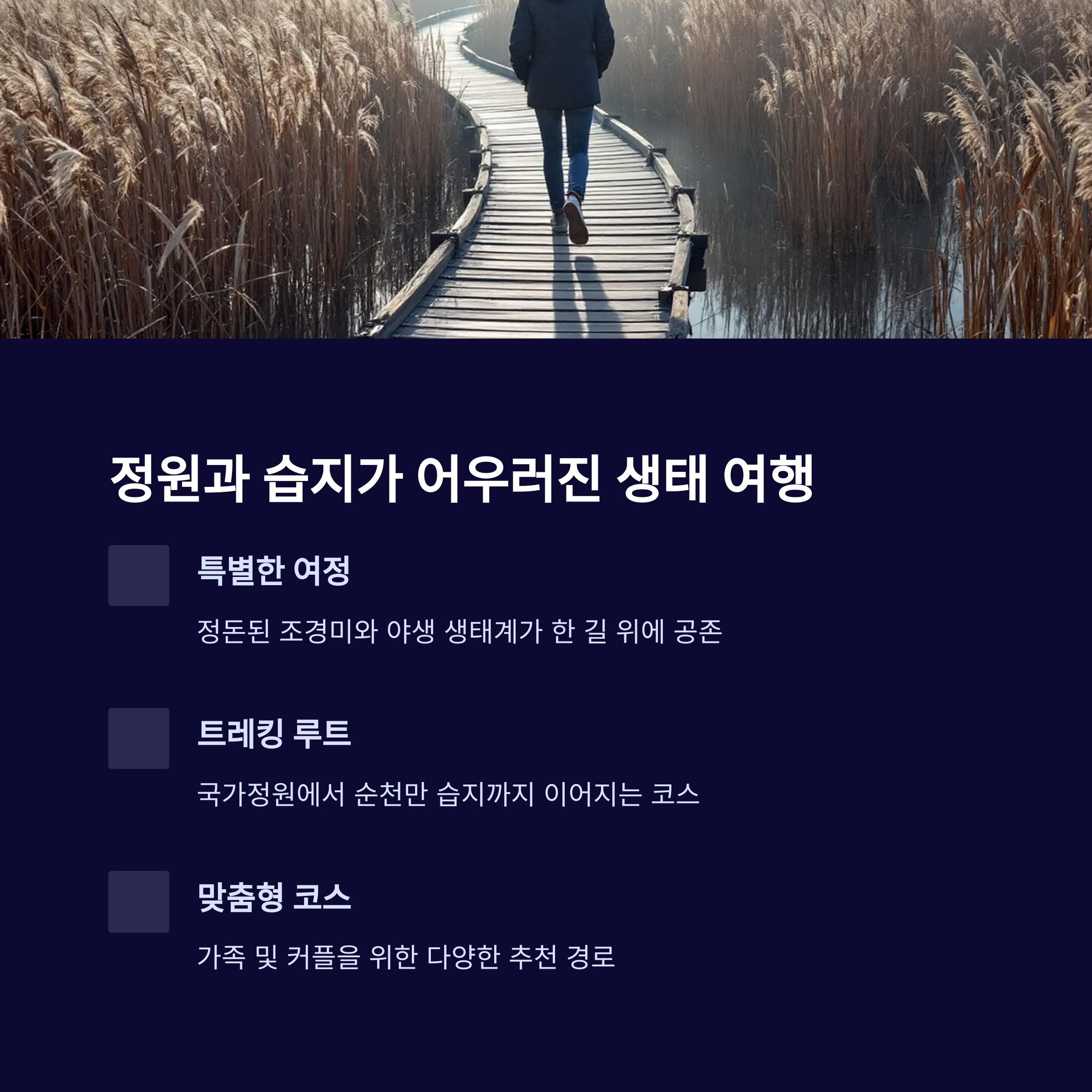 자연을 체험하며 걷는 순천만의 진짜 매력을 담아 안내드립니다.