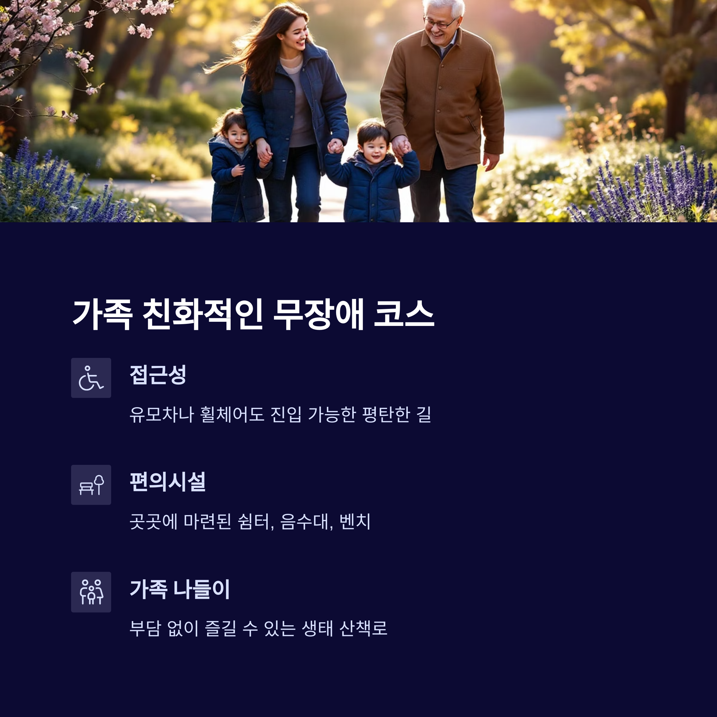 유모차나 휠체어도 진입이 가능한 무장애 코스로 구성되어 있습니다.