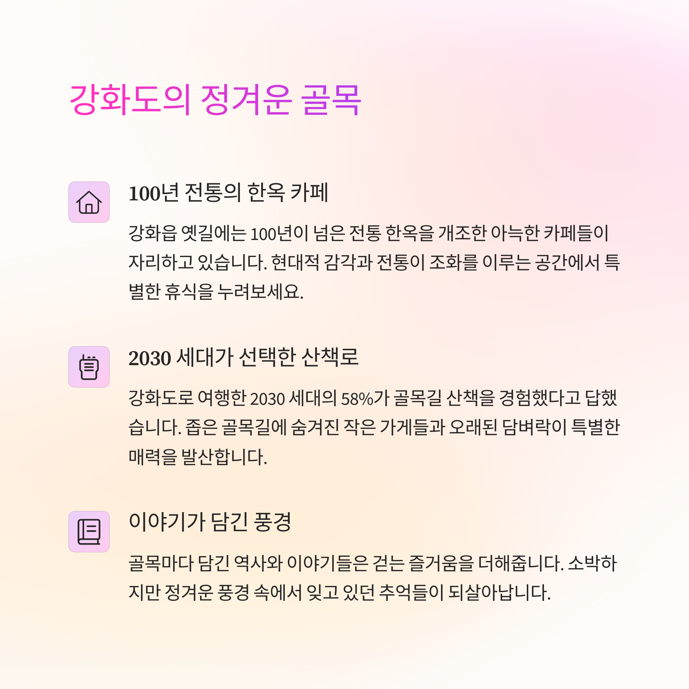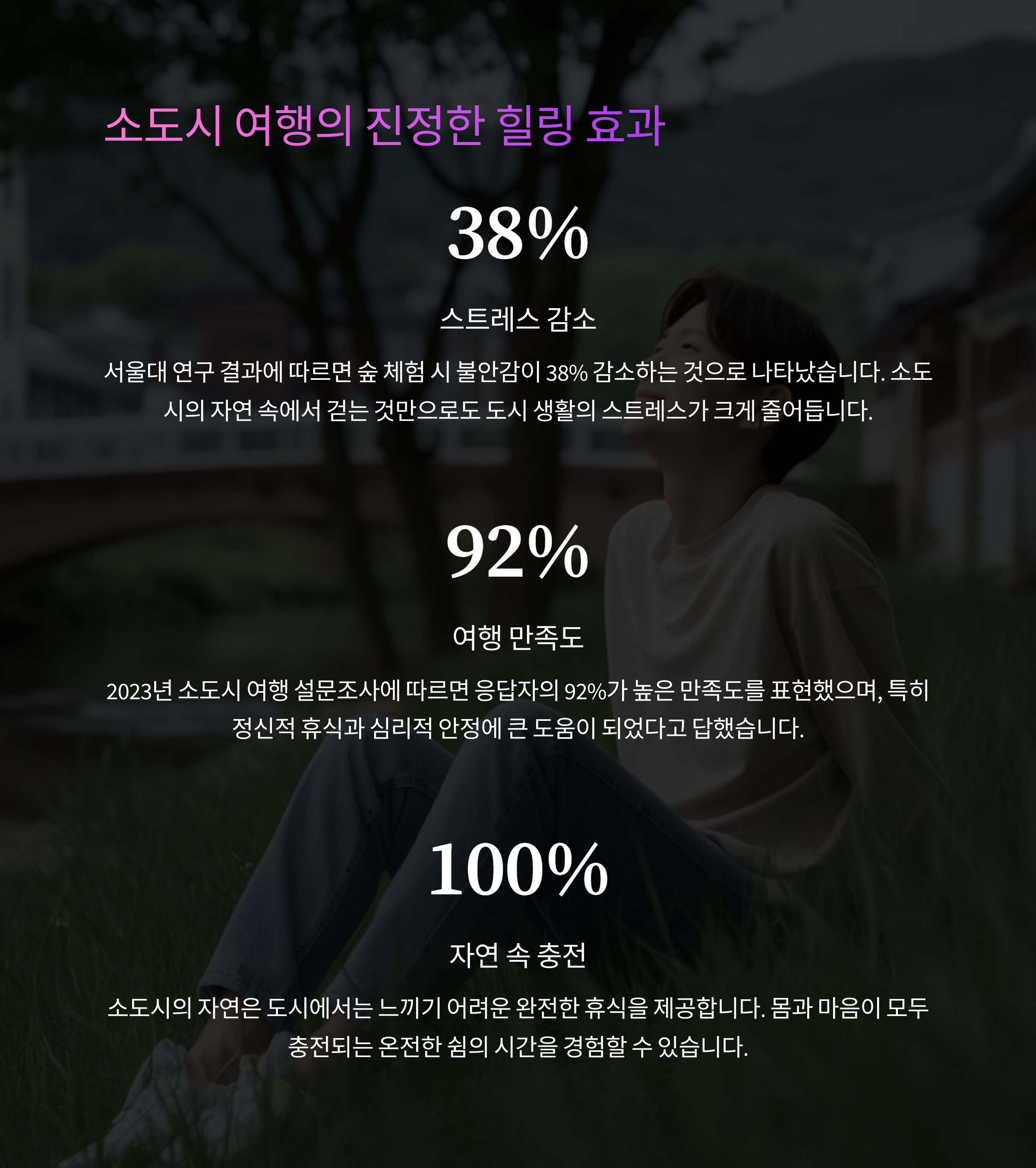 | Q. 소도시 여행의 가장 큰 매력은? 화려하지 않지만, 진정한 여유와 따뜻한 정서입니다. |