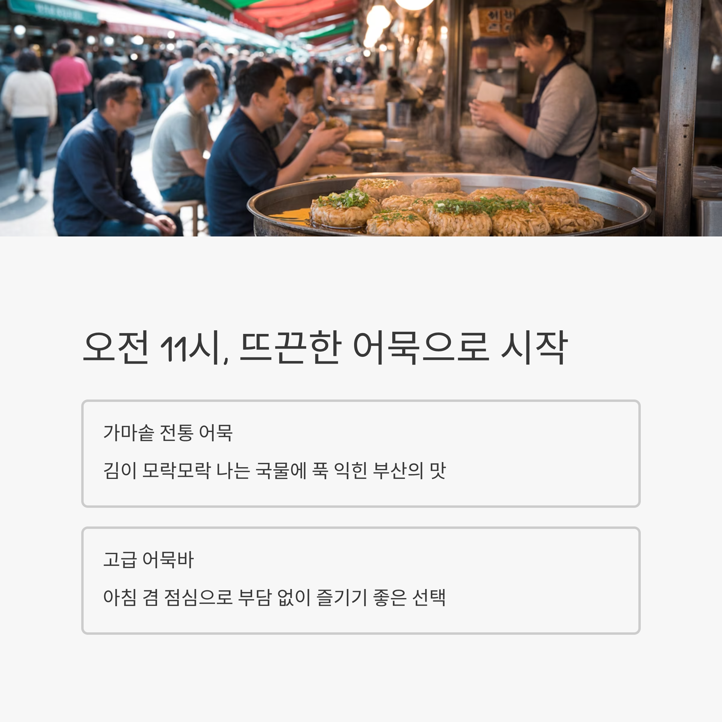 시작은 오전 11시, 뜨끈한 어묵 한 입으로