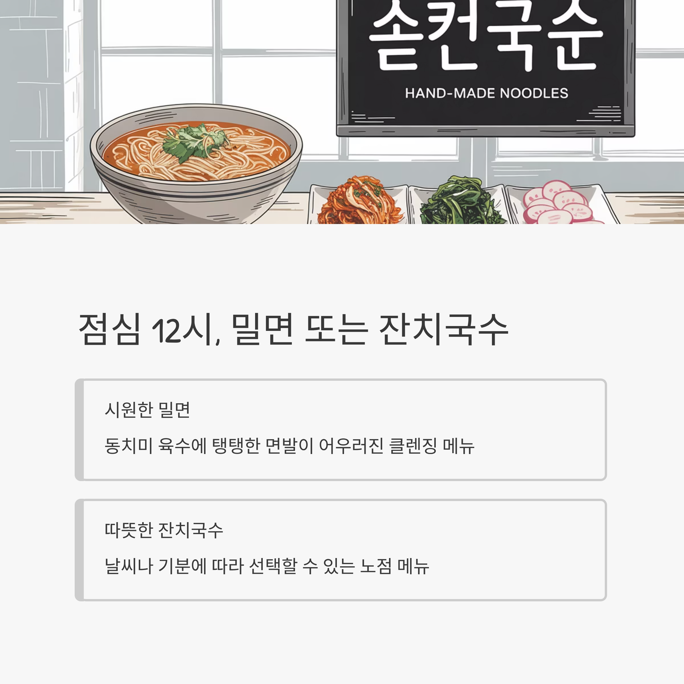 점심 12시, 밀면 or 잔치국수로 속을 달래자