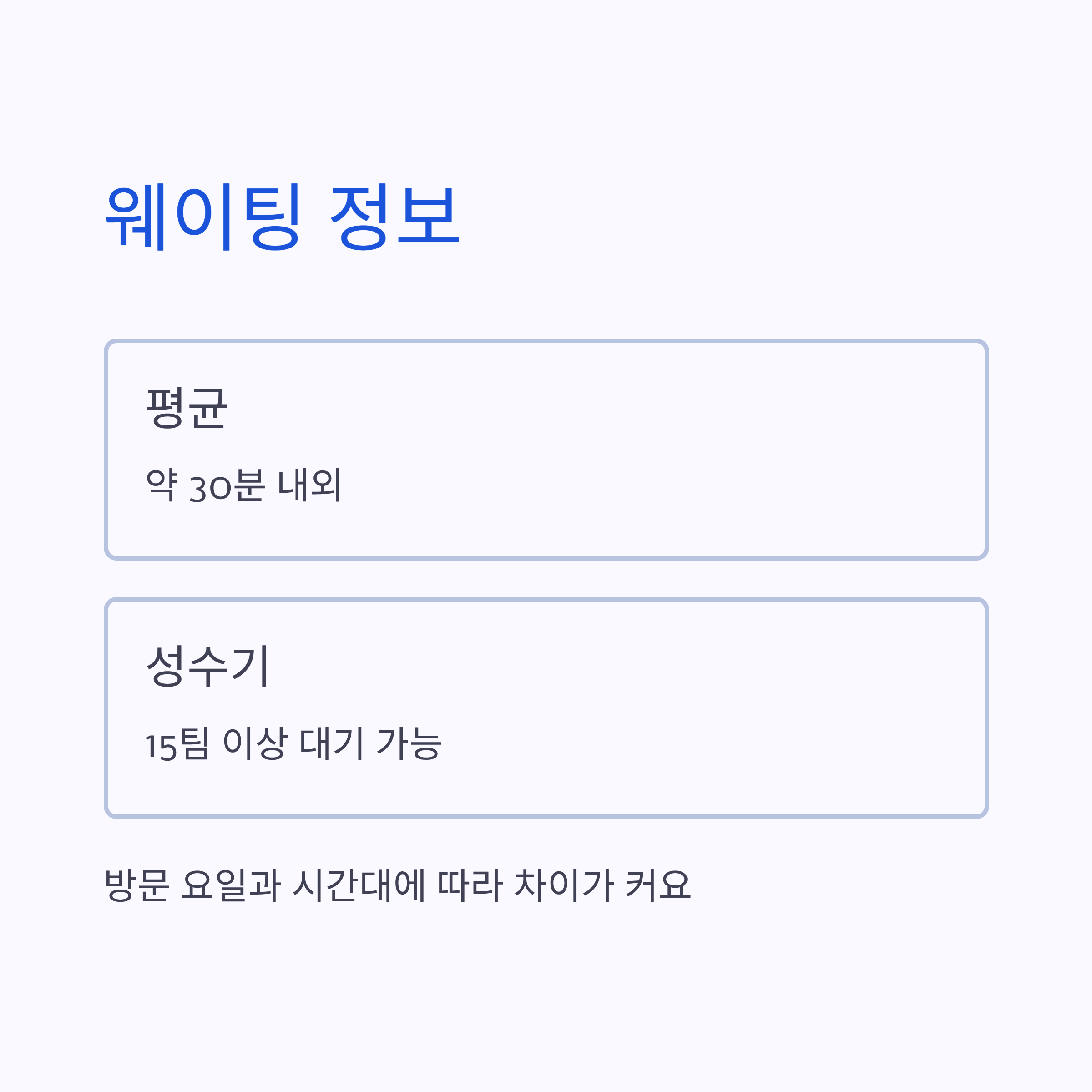 | 웨이팅 | 평균 30분 내외, 성수기에는 장시간 대기 가능 |