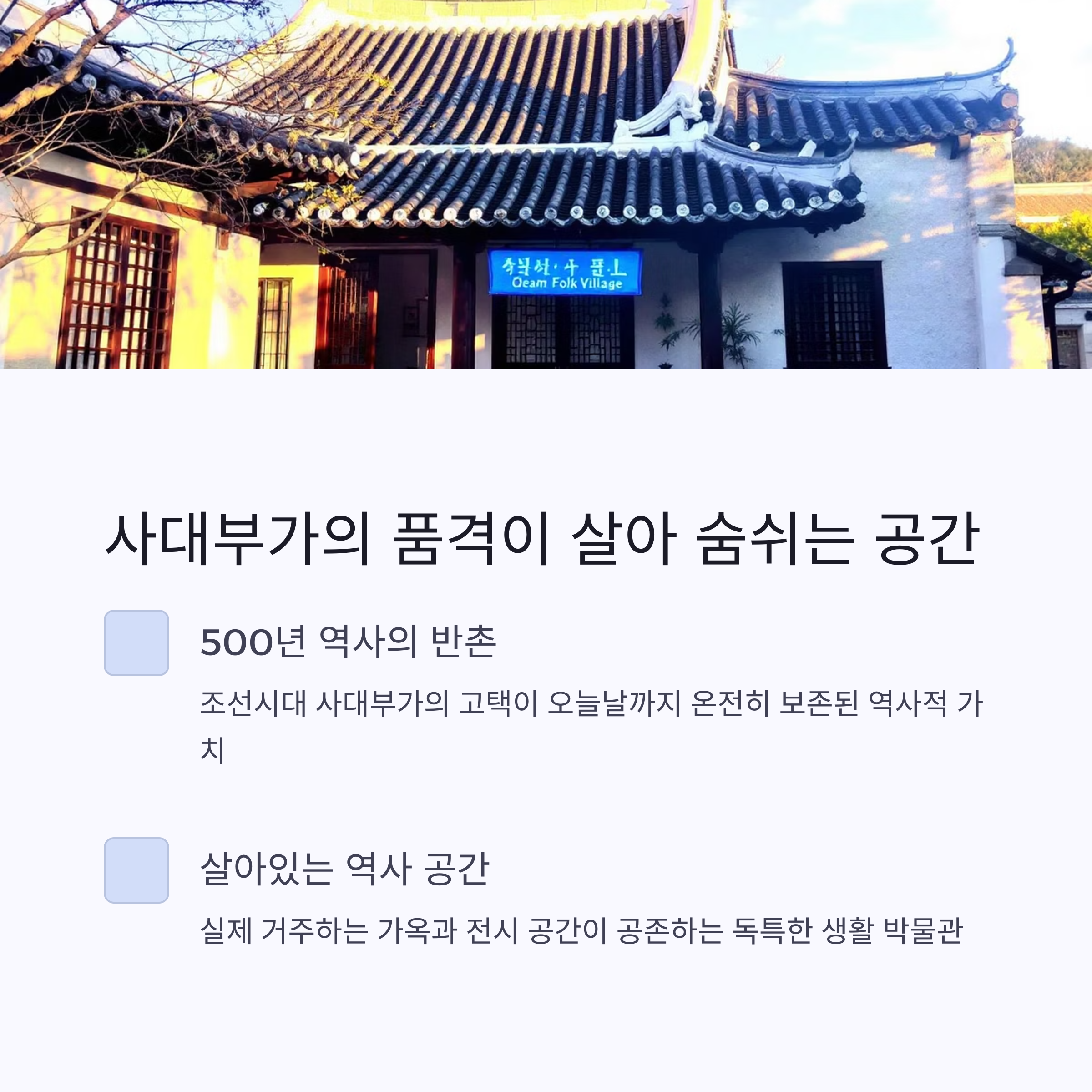 보존되어 있어 조선시대의 생활 문화를 직접 느껴볼 수 있습니다.