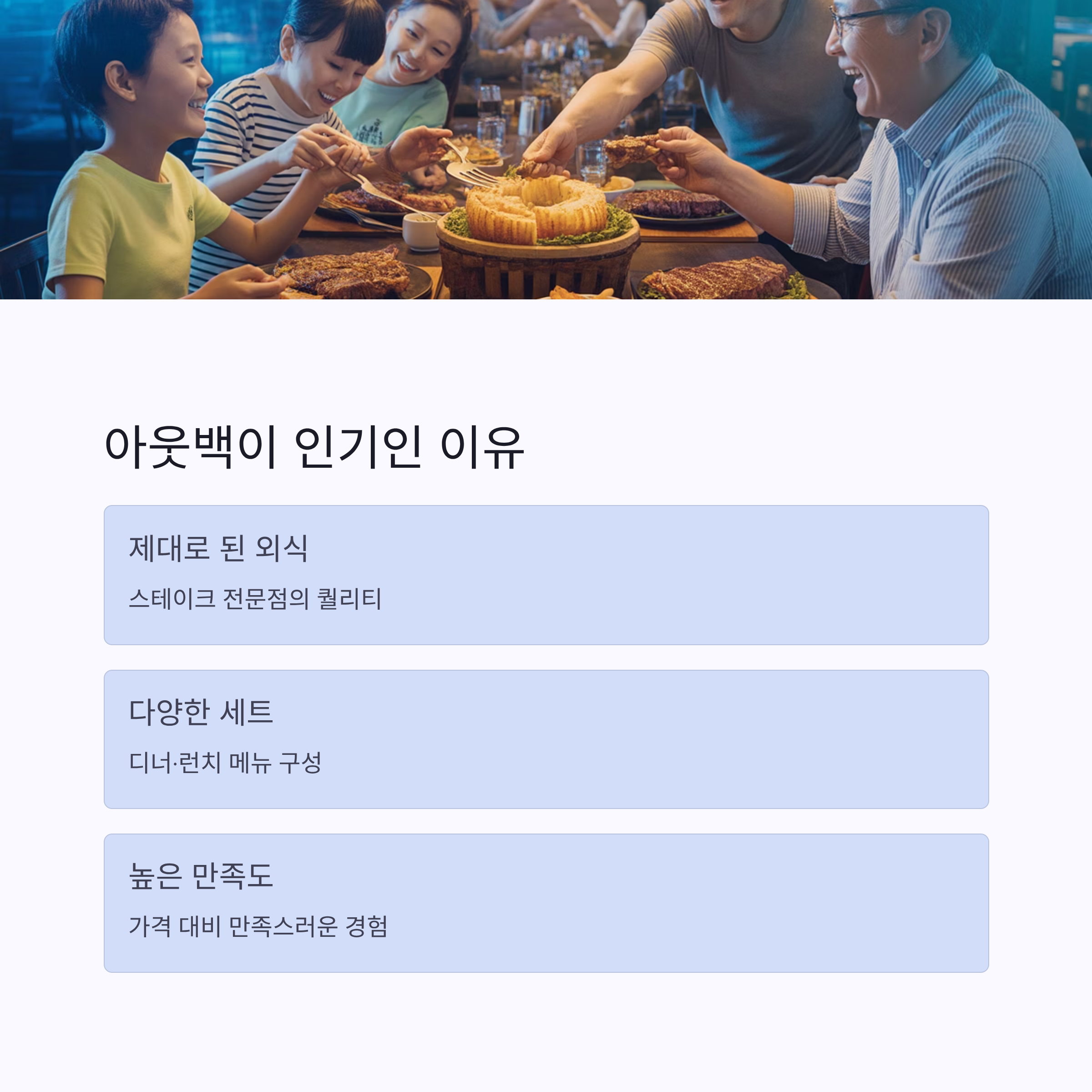 | 아웃백 앱 멤버십 | 최대 15% 포인트 적립 및 생일 쿠폰 제공 |