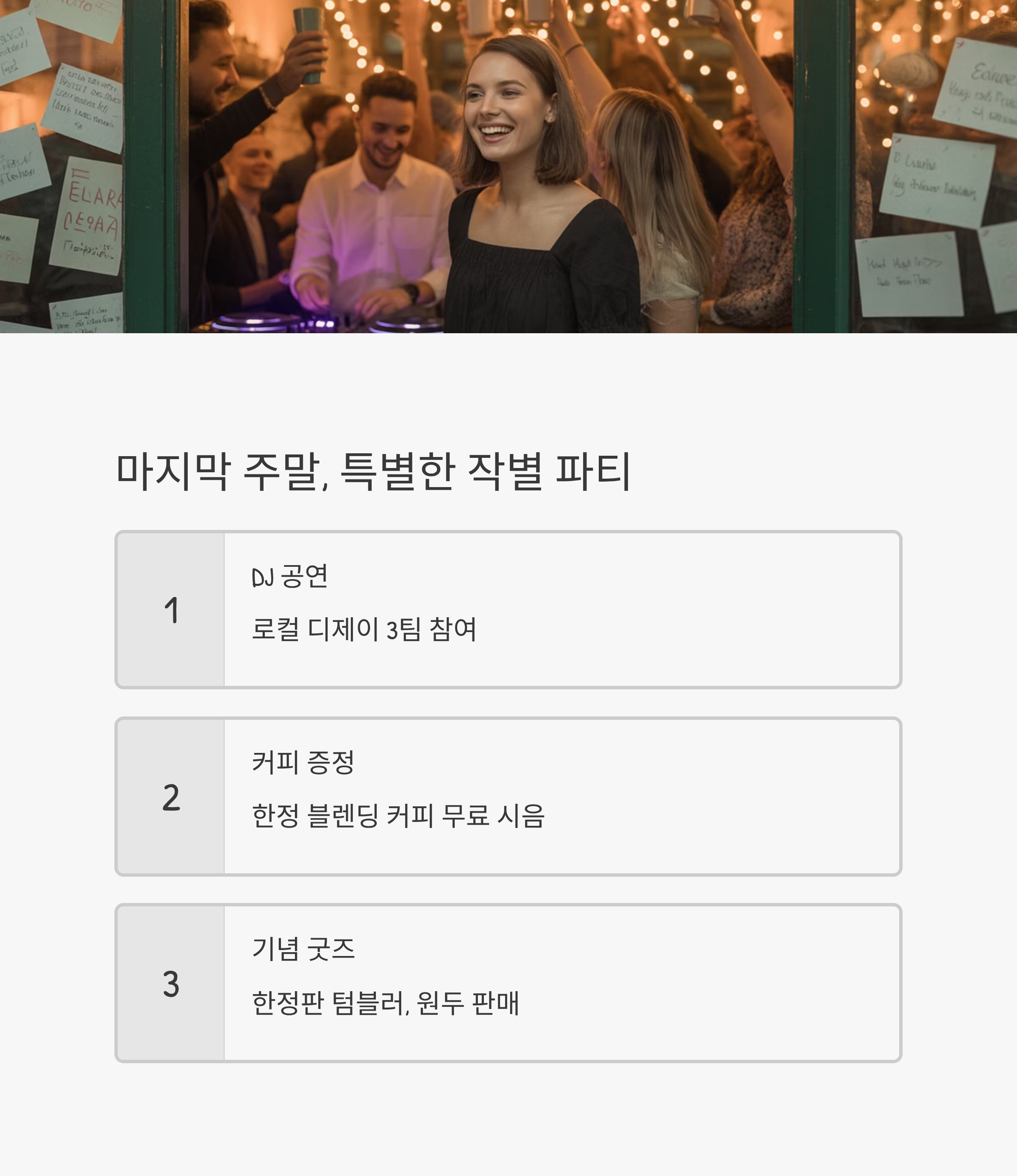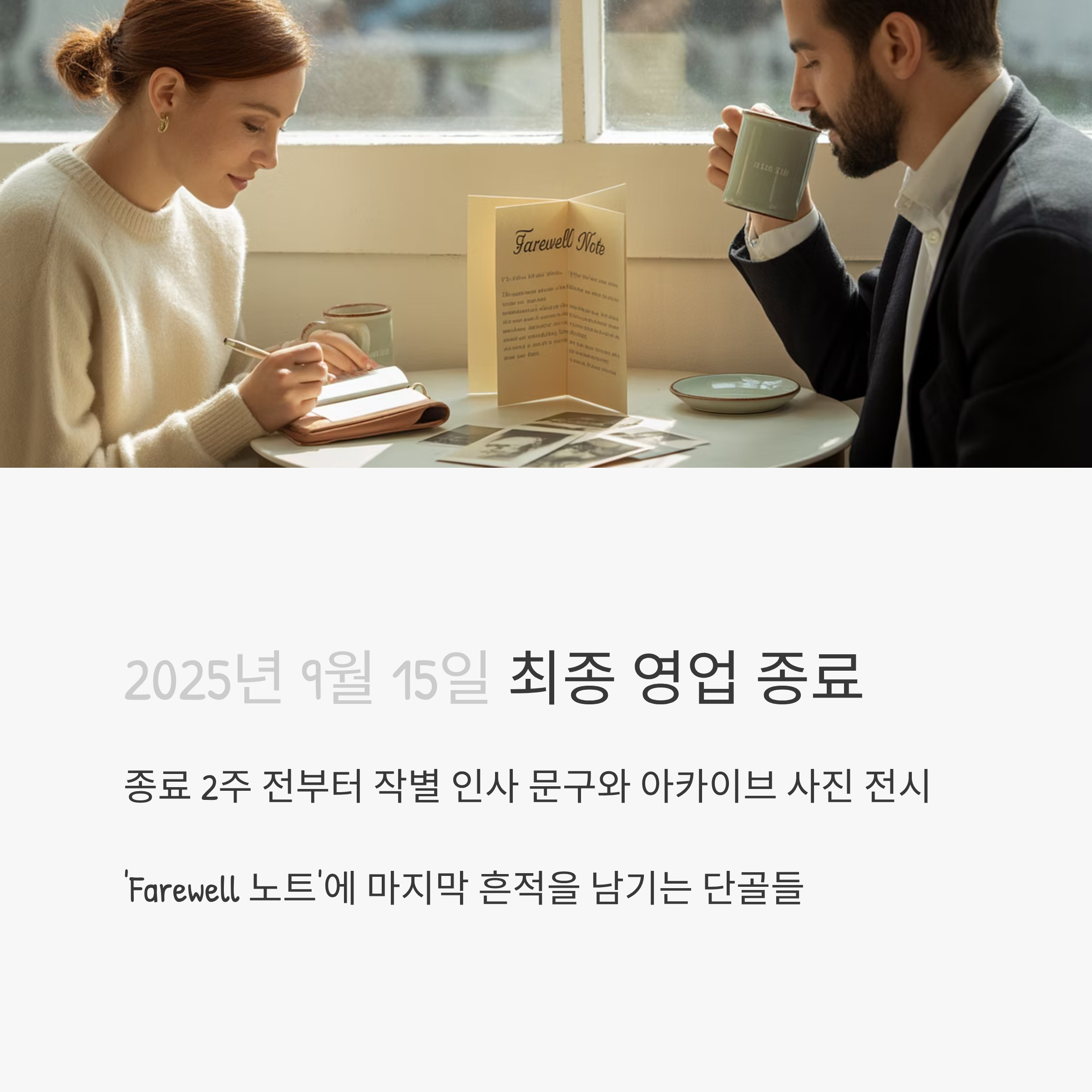 종료 2주 전부터는 카페 곳곳에 작별 인사 문구와 아카이브 사진이 전시되고 있으며,