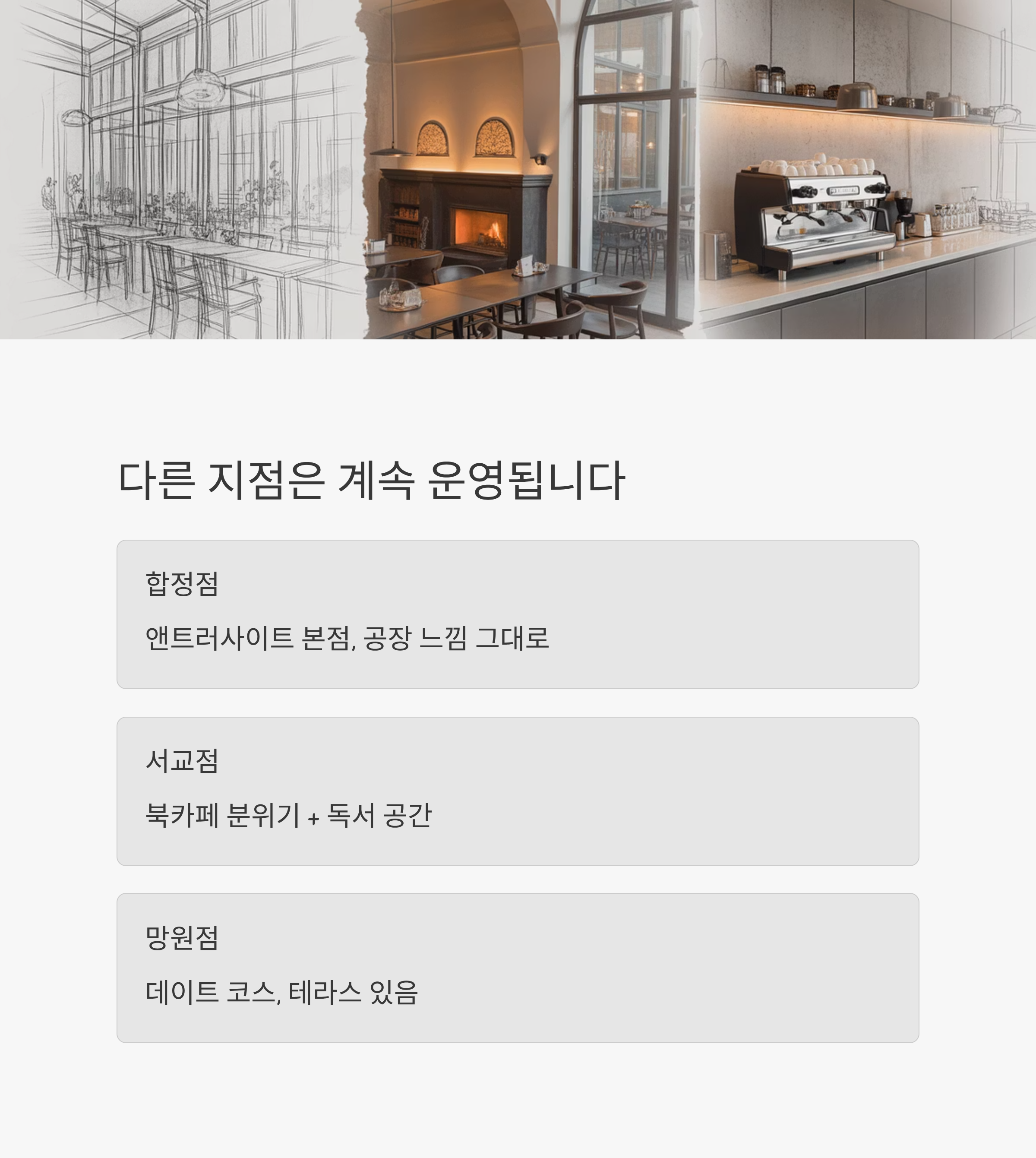 다른 지점들도 특색 있는 공간으로 운영 중입니다.