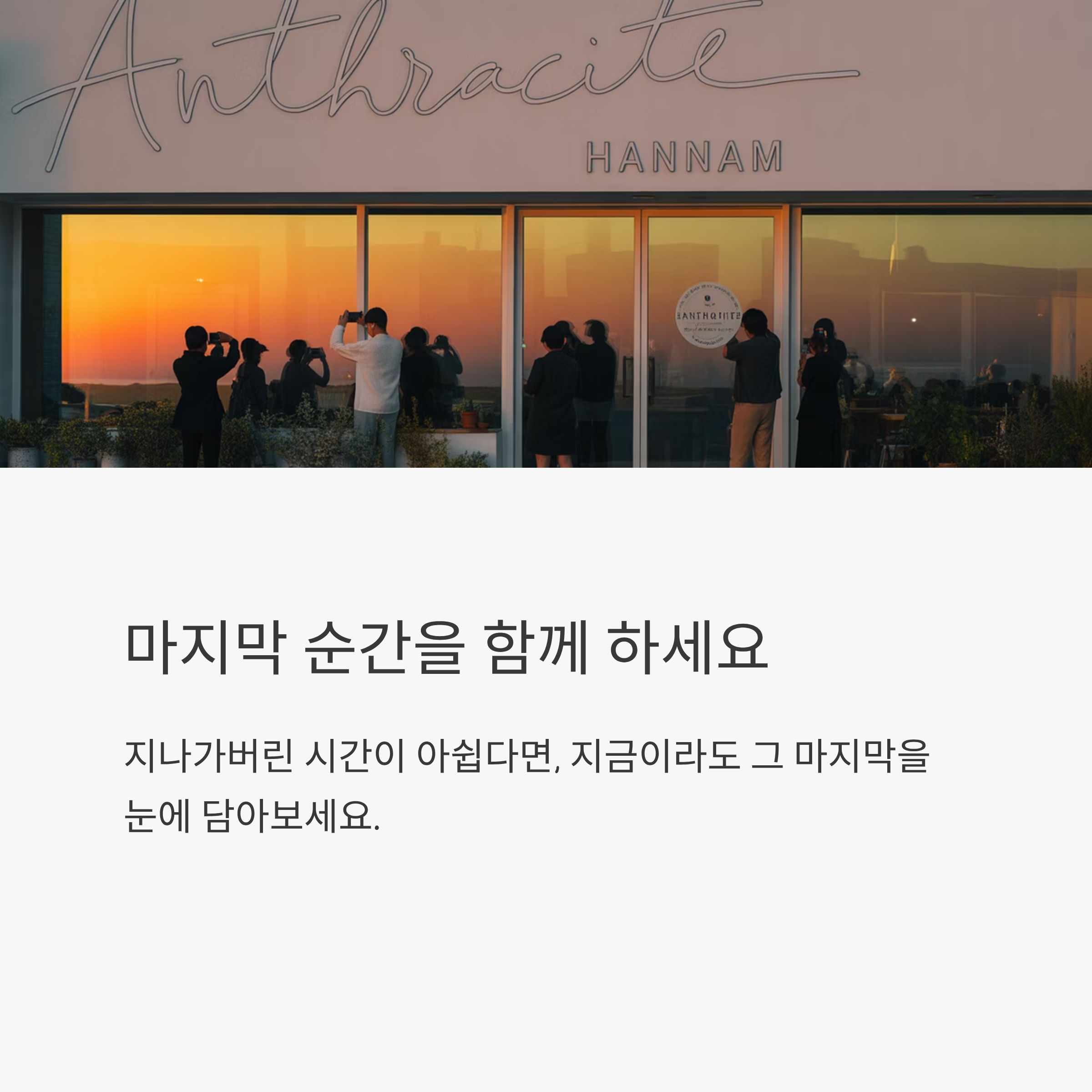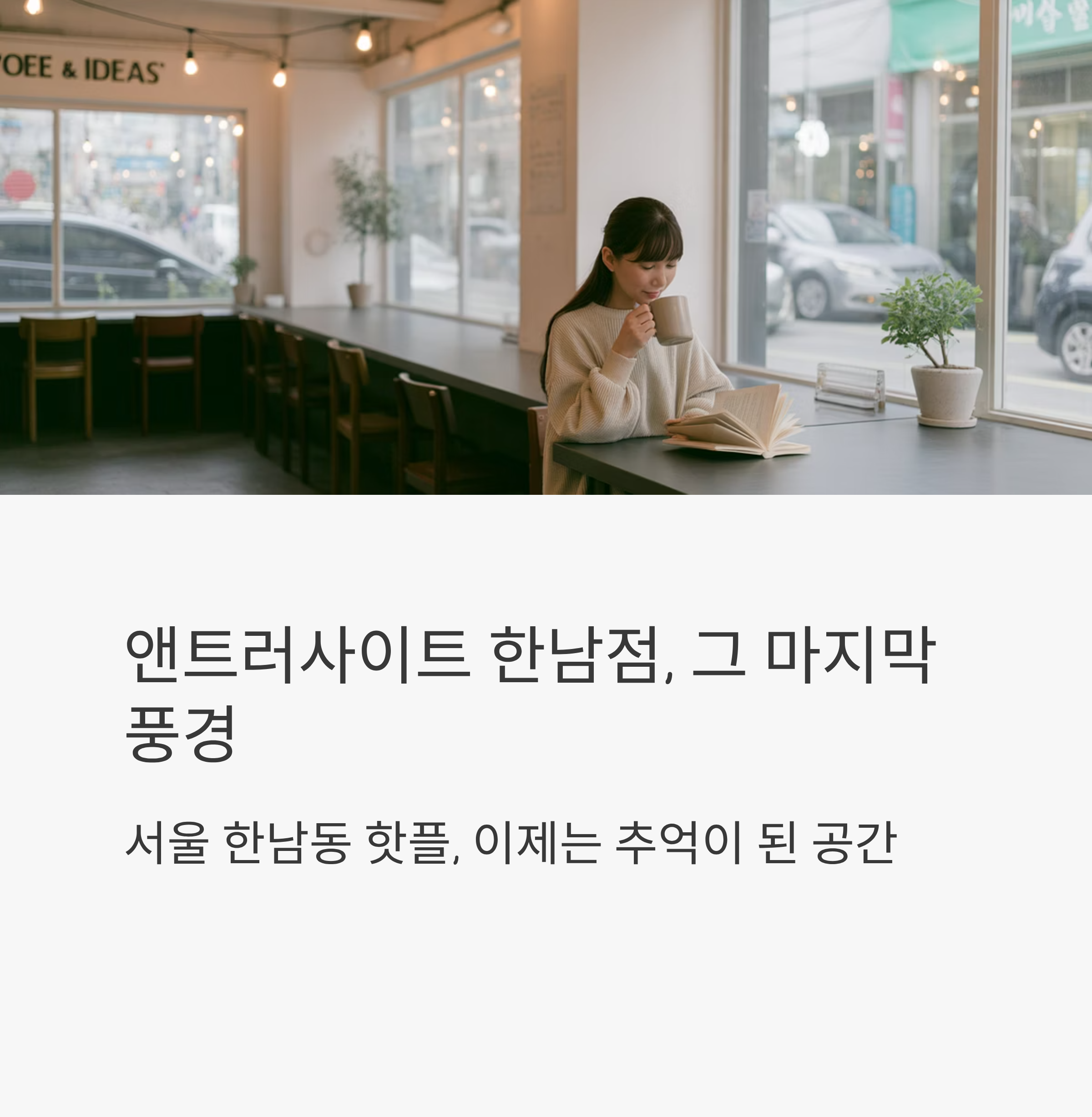 앤트러사이트 한남점은 2025년 9월 15일부로 최종 영업을 종료합니다.
