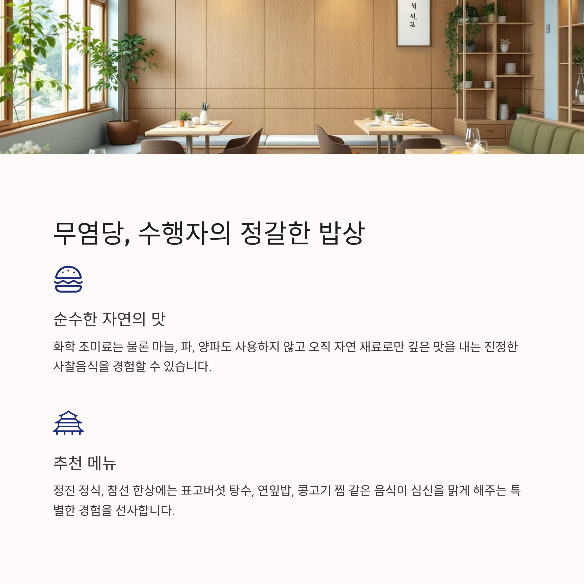 사찰음식 전문점 ‘무염당’, 수행자의 식탁을 만나다