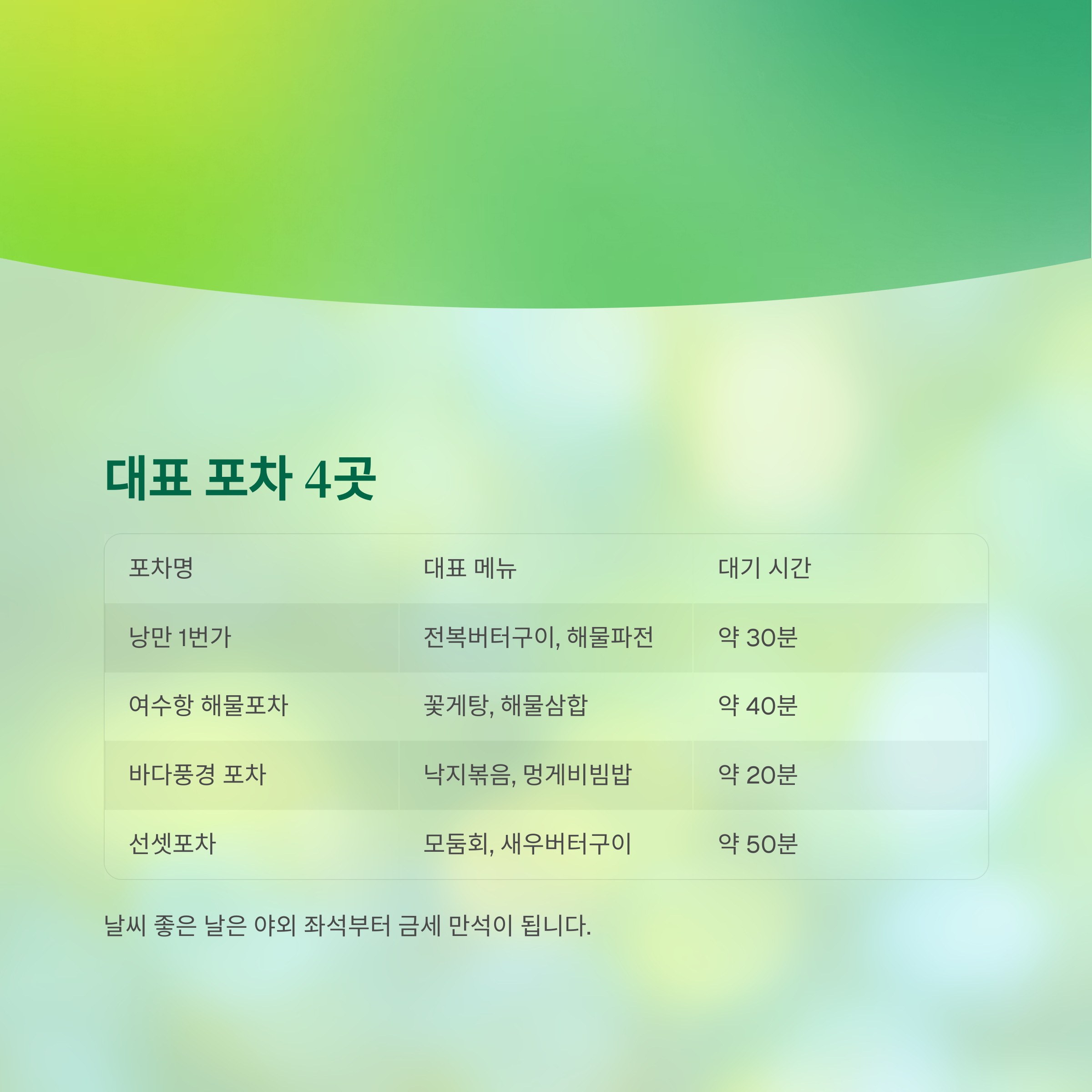 포차명 대표 메뉴 특징 대기 시간
