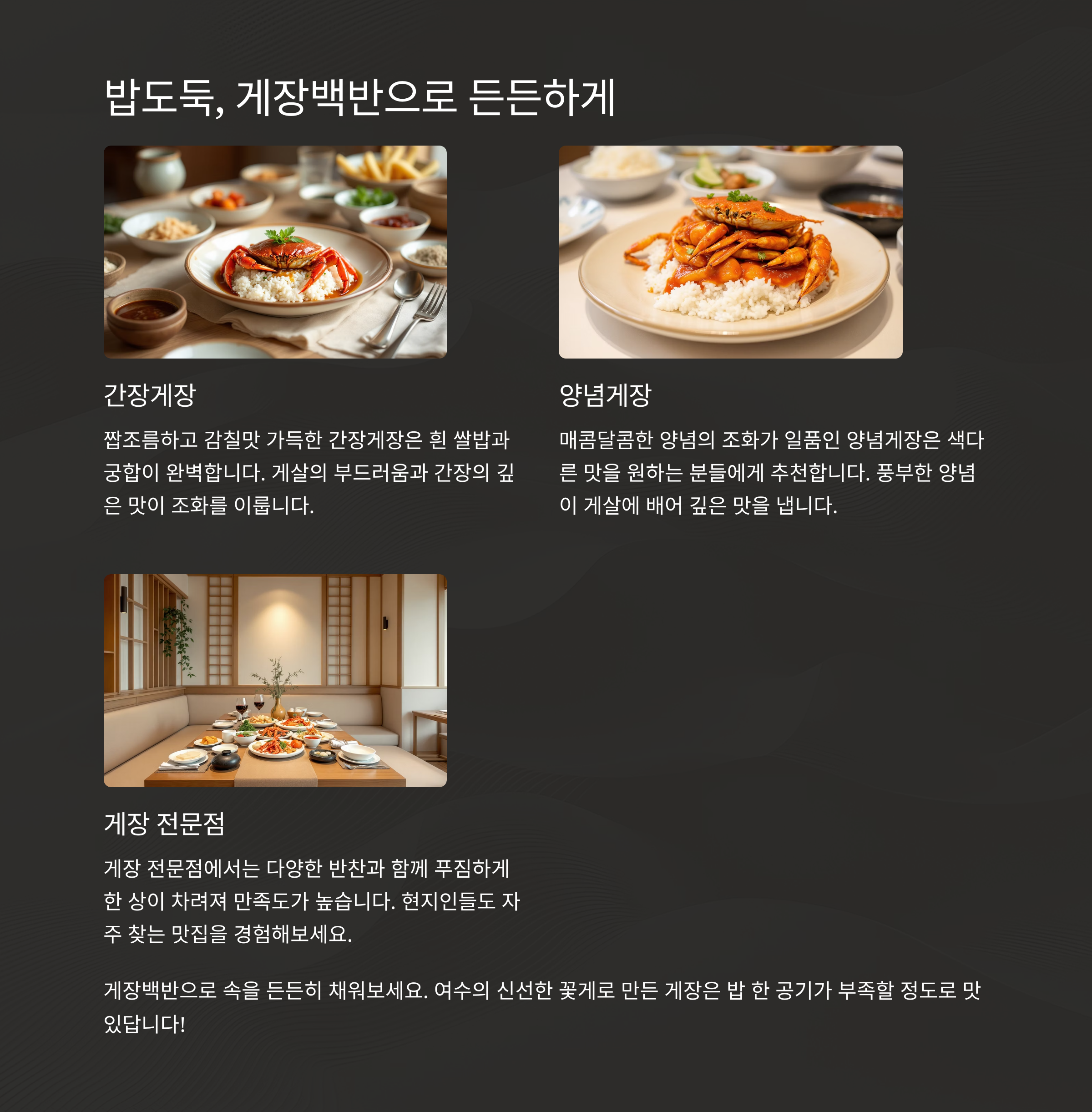 | 양념게장 | 매콤달콤한 양념의 조화 |