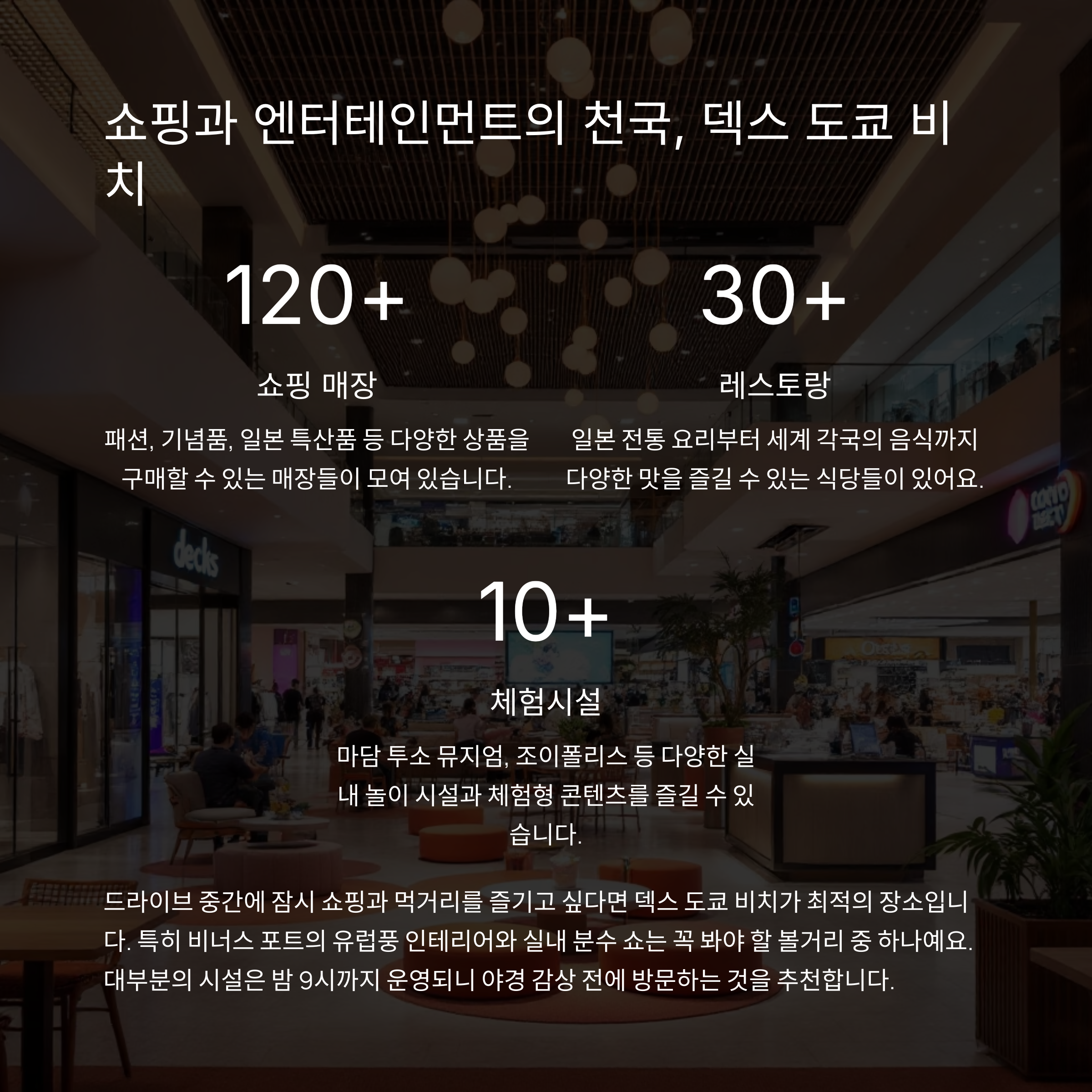 쇼핑과 엔터테인먼트까지, 덱스 도쿄 비치
