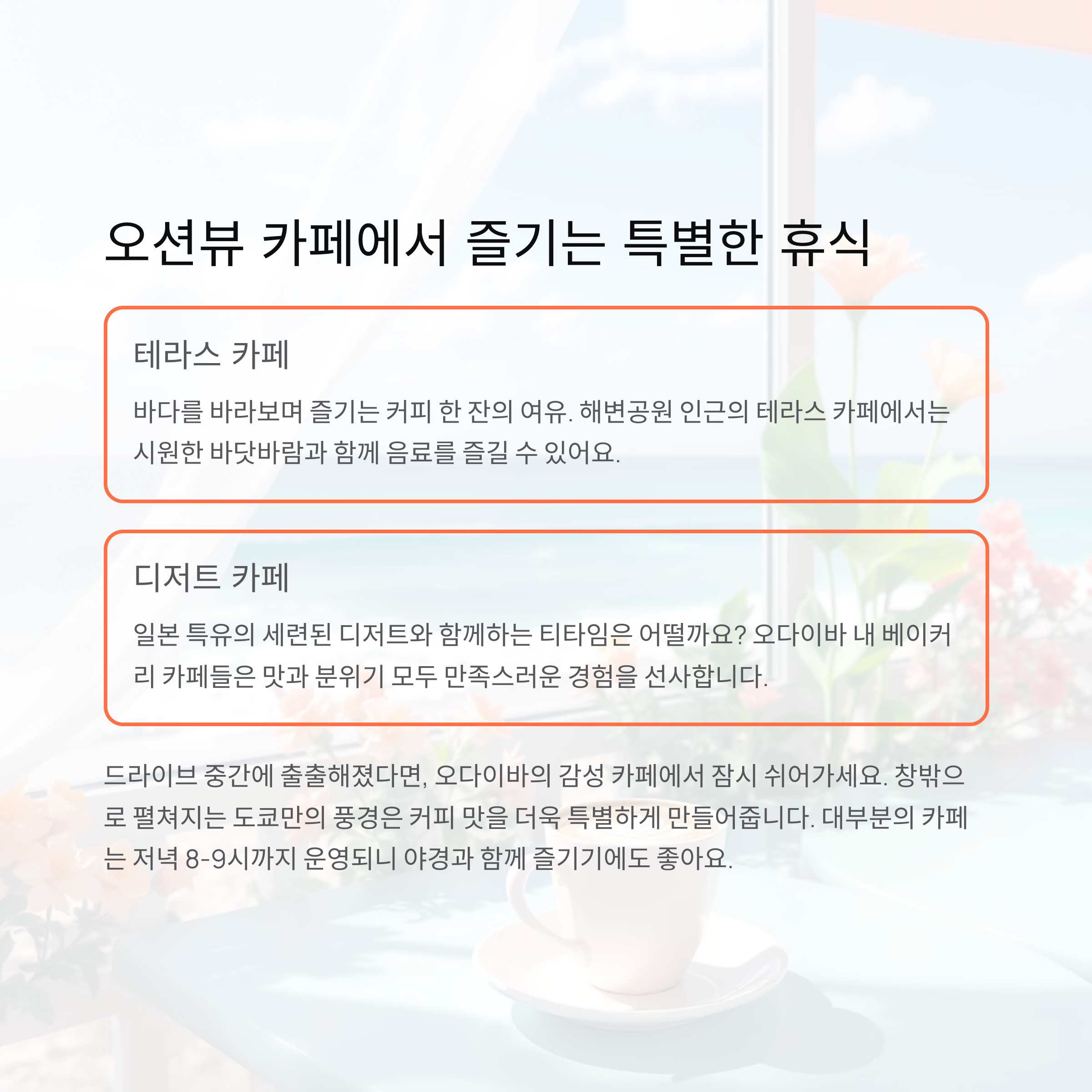 드라이브 중 출출해졌다면 오다이바의 감성 카페에