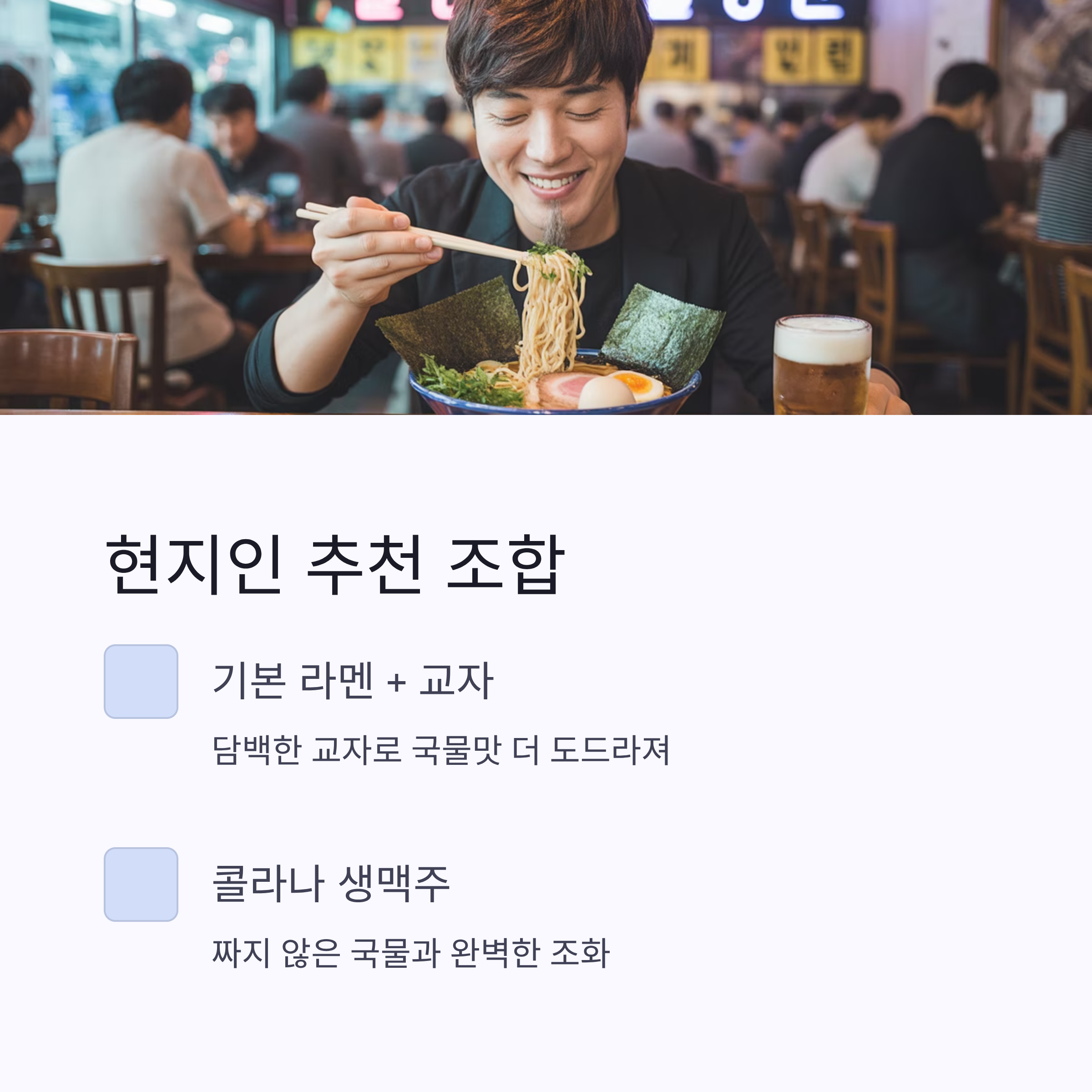 현지인 추천 조합: 라멘 + 교자 + 콜라