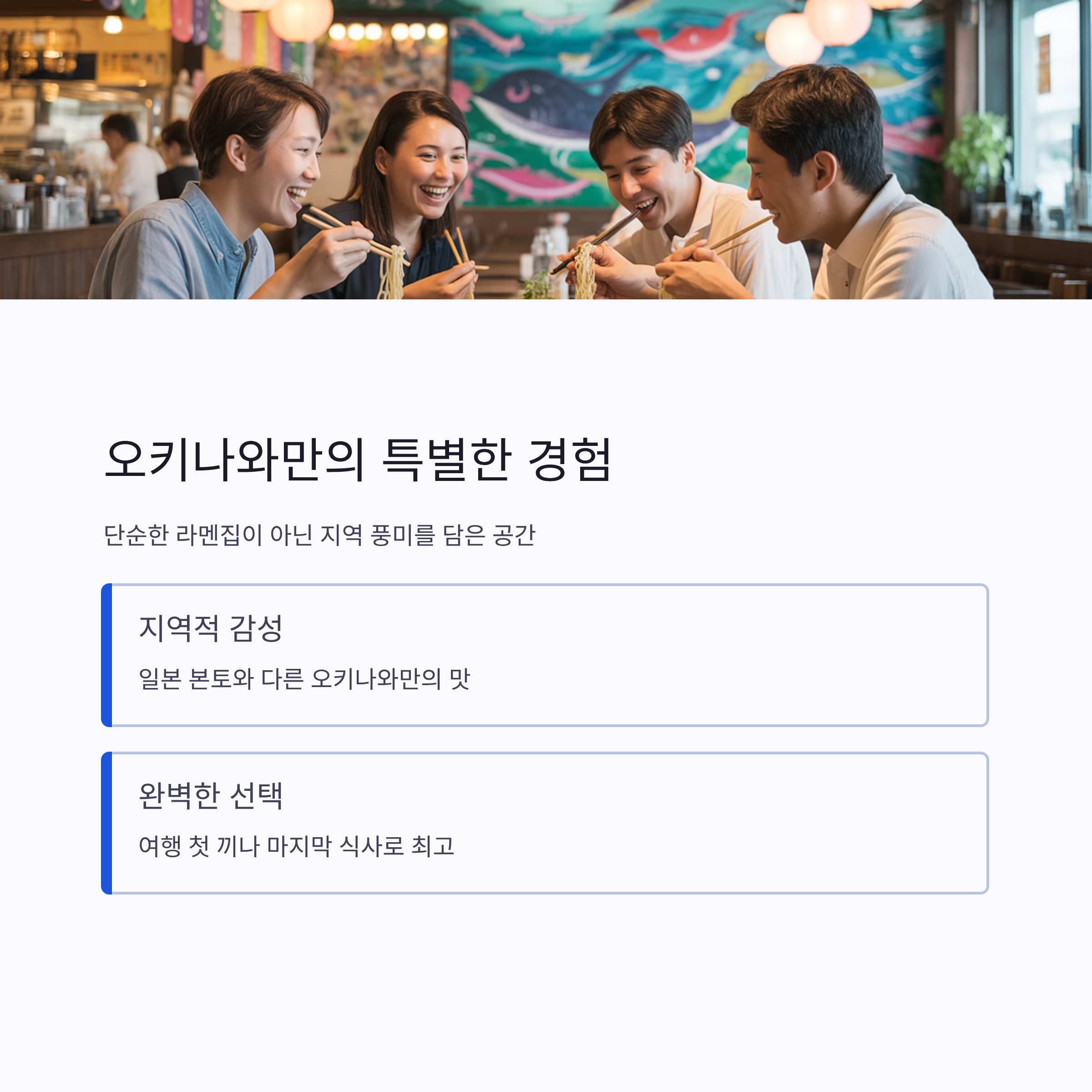 특히 일본 본토 라멘과는 또 다른 감성으로, 깔끔하지만 인상 깊은 맛을 찾는 분들에게 완벽한 선택이죠.