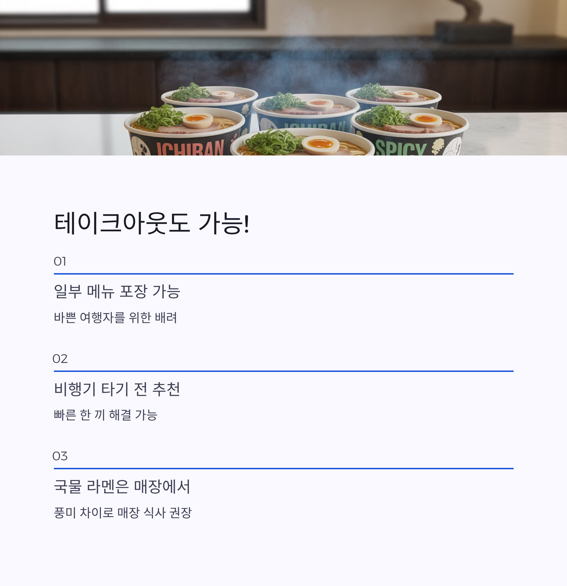단, 국물 라멘의 경우 매장에서 먹는 것을 추천드려요.