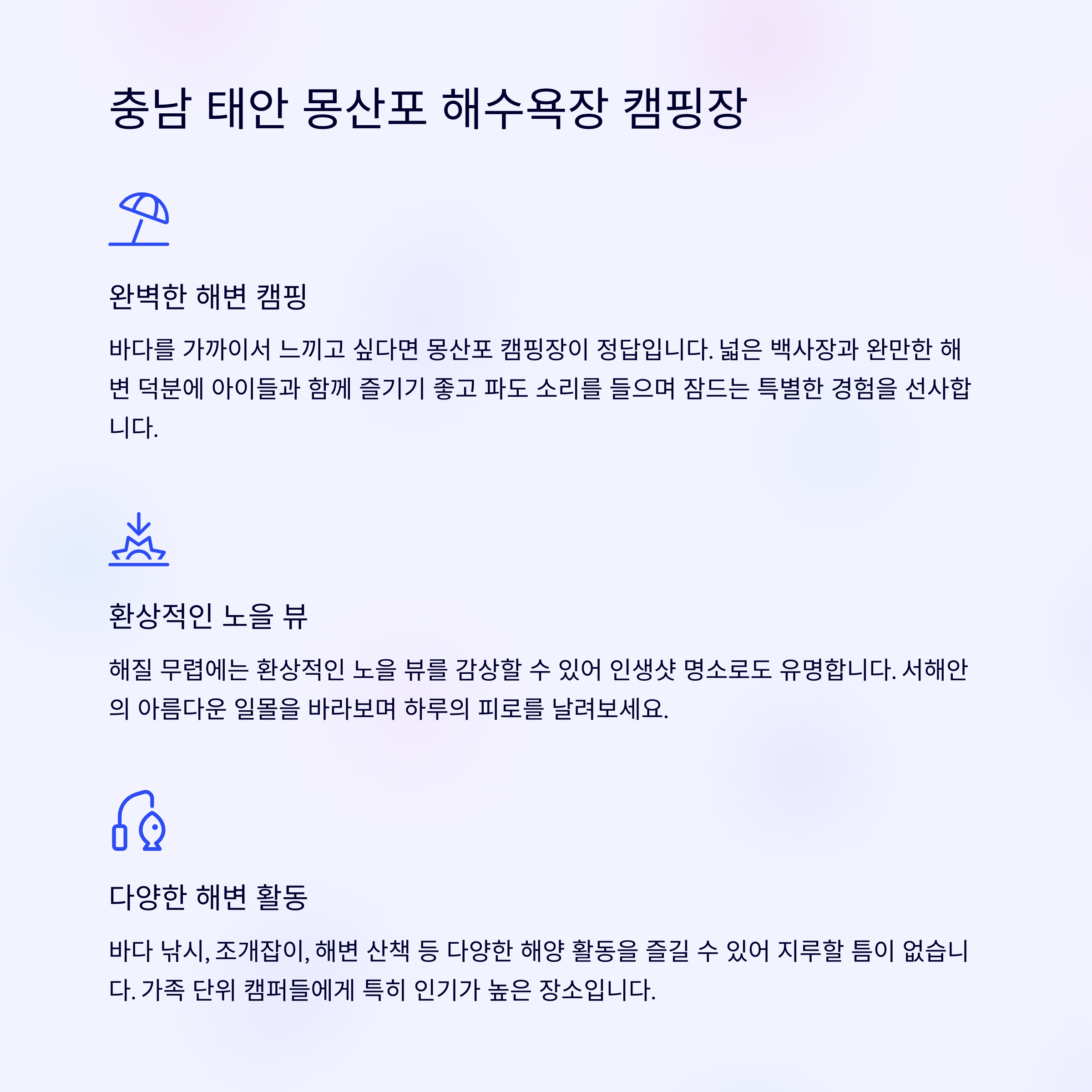 바다를 가까이서 느끼고 싶다면 몽산포 캠핑장이 정답입니다.
