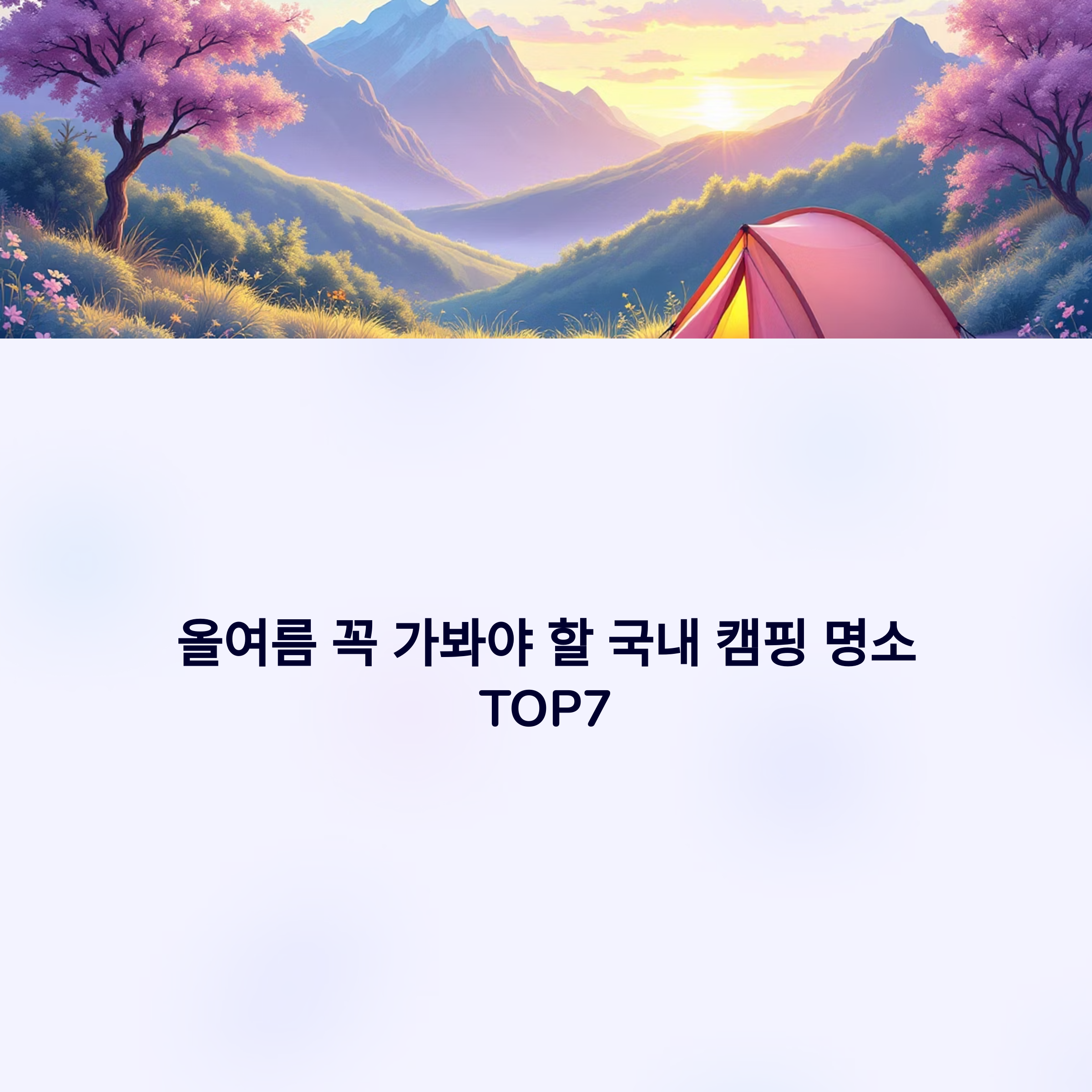 본격적인 여름휴가 시즌을 앞두고 많은 분들이 캠핑 여행지를 고민하고 계실 텐데요. 시원한 계곡, 푸르른 숲 속, 아름다운 바닷가 등 자연과 어우러진 국내 캠핑 명소들이 인기몰이를 하고 있습니다. 이번 글에서는 올여름 가족, 연인, 친구와 함께 떠나기 좋은 캠핑 핫플레이스 7곳을 소개해드리며 각 장소의 특징과 매력을 꼼꼼히 알려드릴게요.