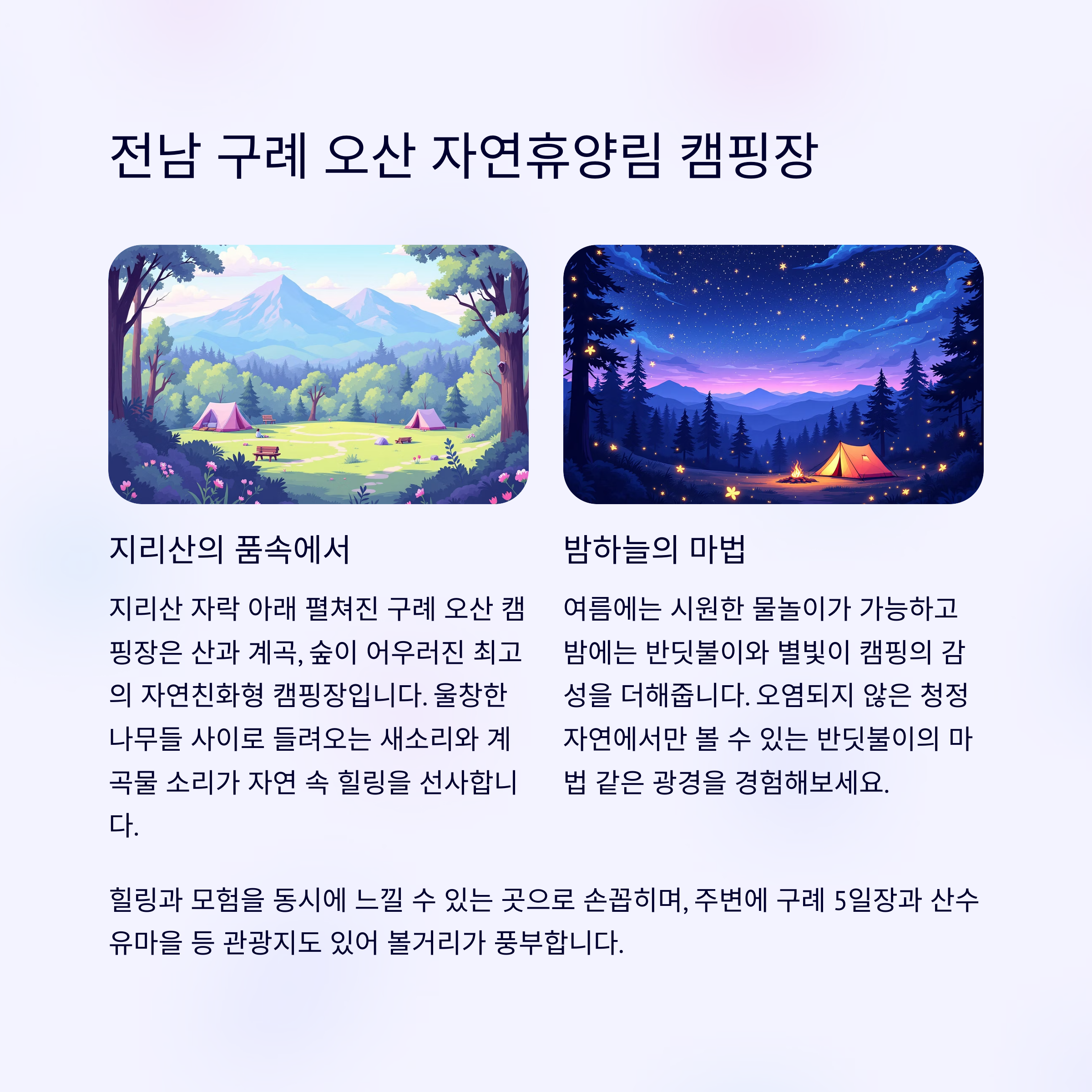 지리산 자락 아래 펼쳐진 구례 오산 캠핑장은