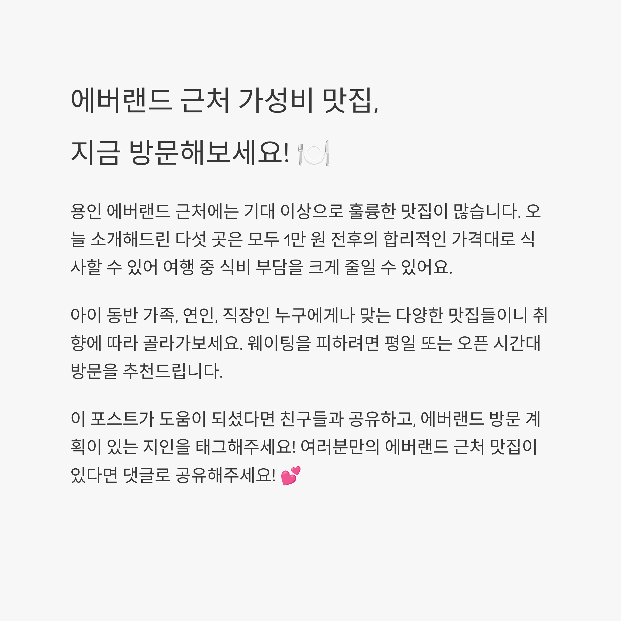 용인 에버랜드 근처에는 기대 이상으로 훌륭한 맛집이 많습니다.