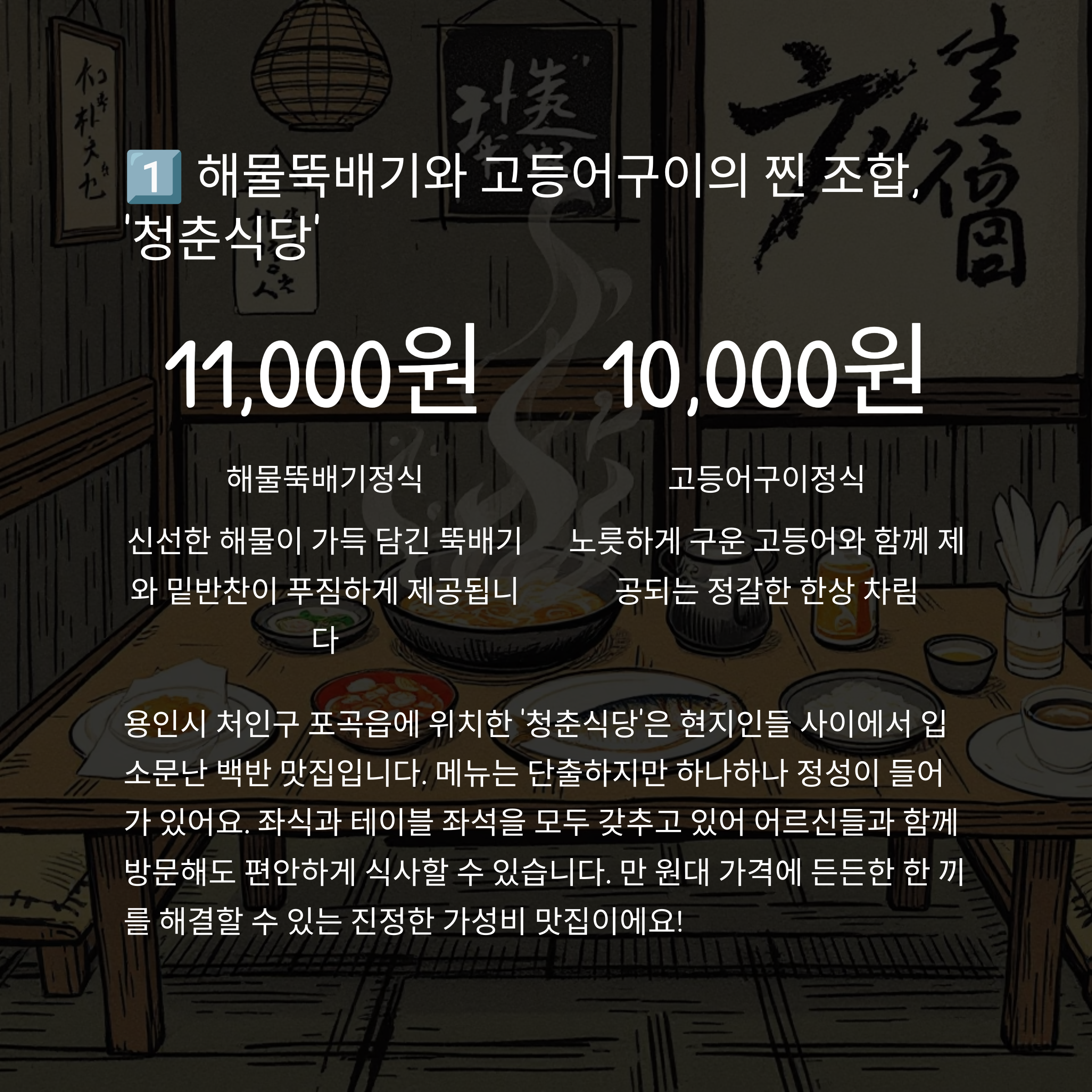 용인시 처인구 포곡읍에 위치한 '청춘식당'은 현지인 사이에서