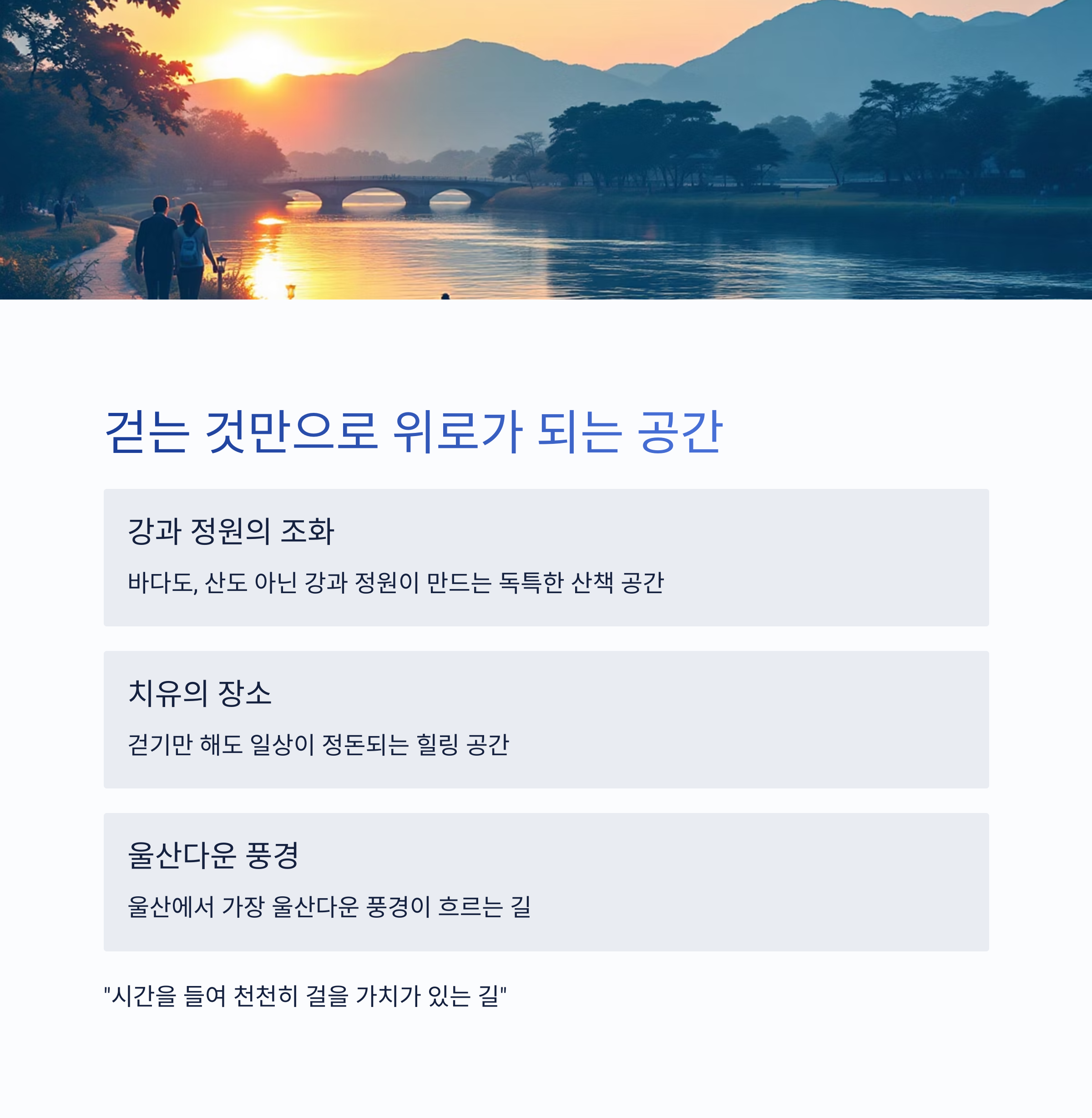 특히 태화강 국가정원 산책로는 누구나 쉽게 걷고 머물 수 있는 도심 속 힐링 코스로