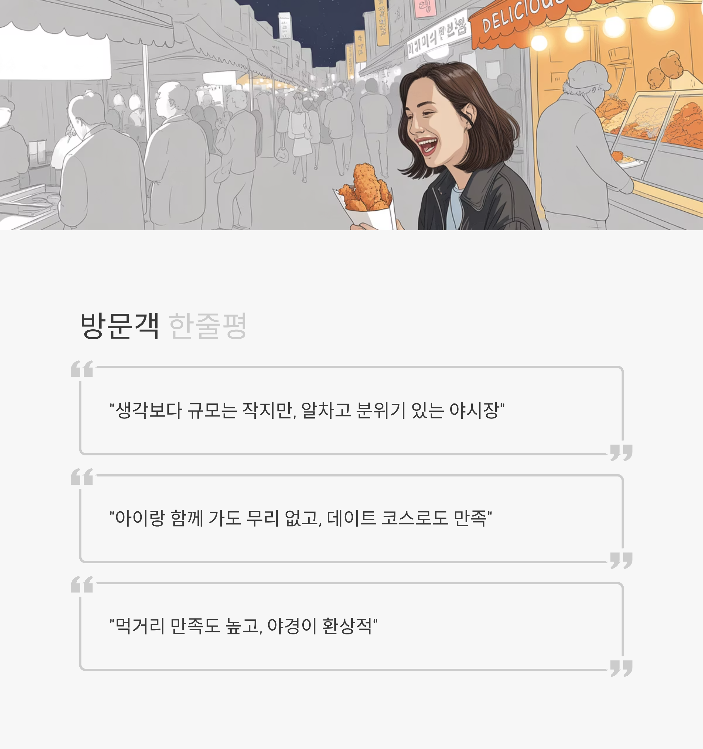 “생각보다 규모는 작지만, 알차고 분위기 있는 야시장”