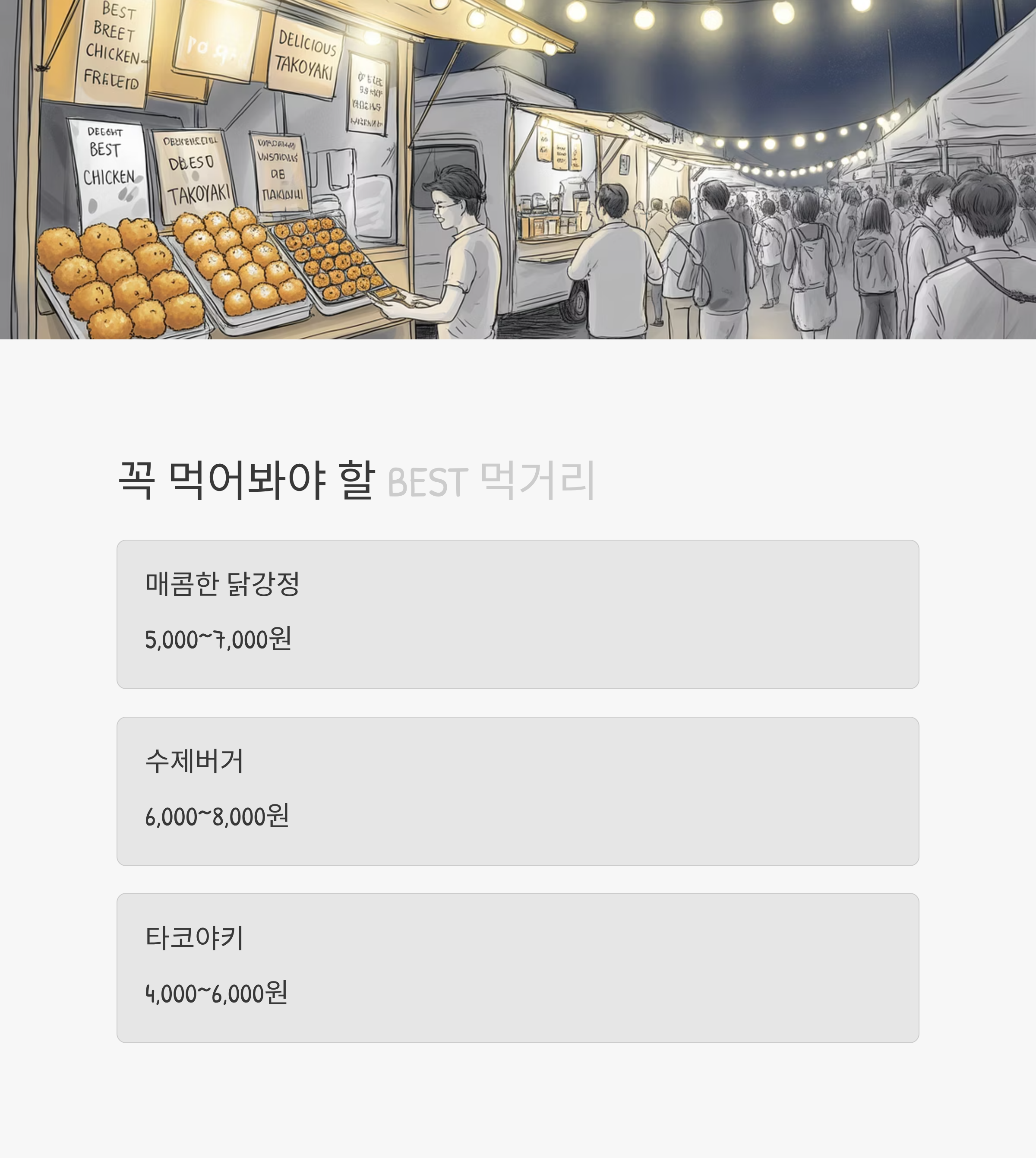 | 닭강정 | 5,000~7,000원 | 매콤달콤한 인기 간식 |
