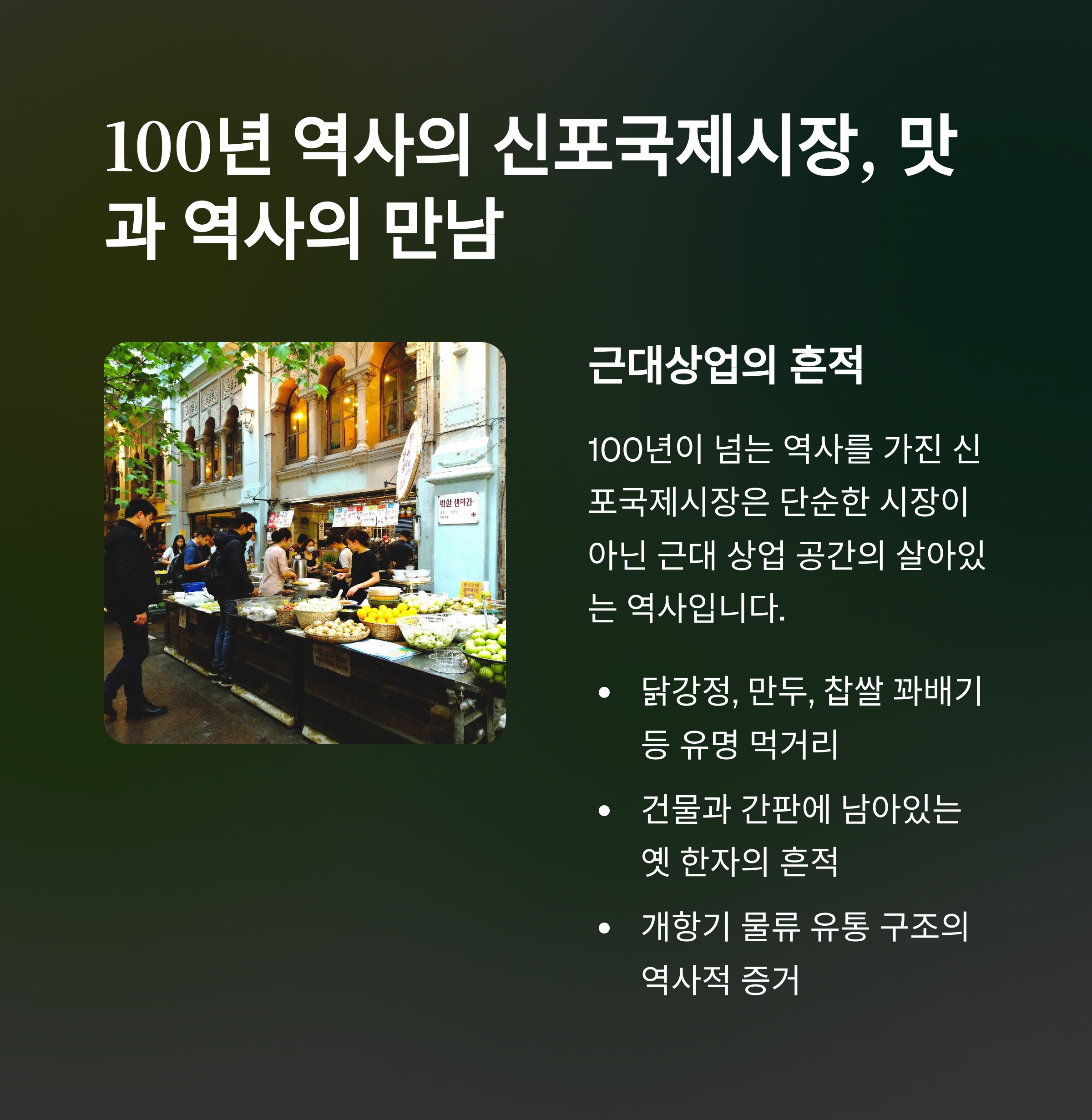 단순한 시장이 아니라 100년 넘는 역사를 가진 근대상업공간입니다.