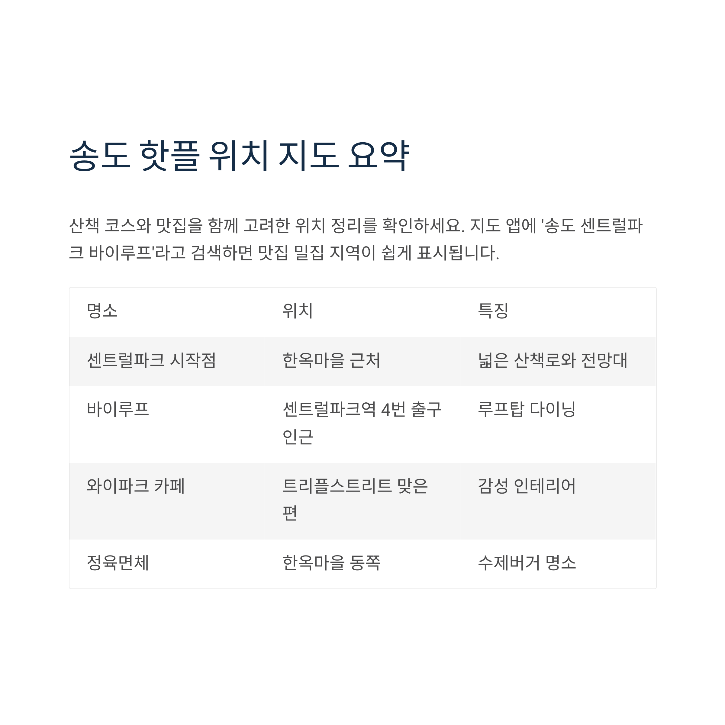 송도 핫플 위치 지도 요약