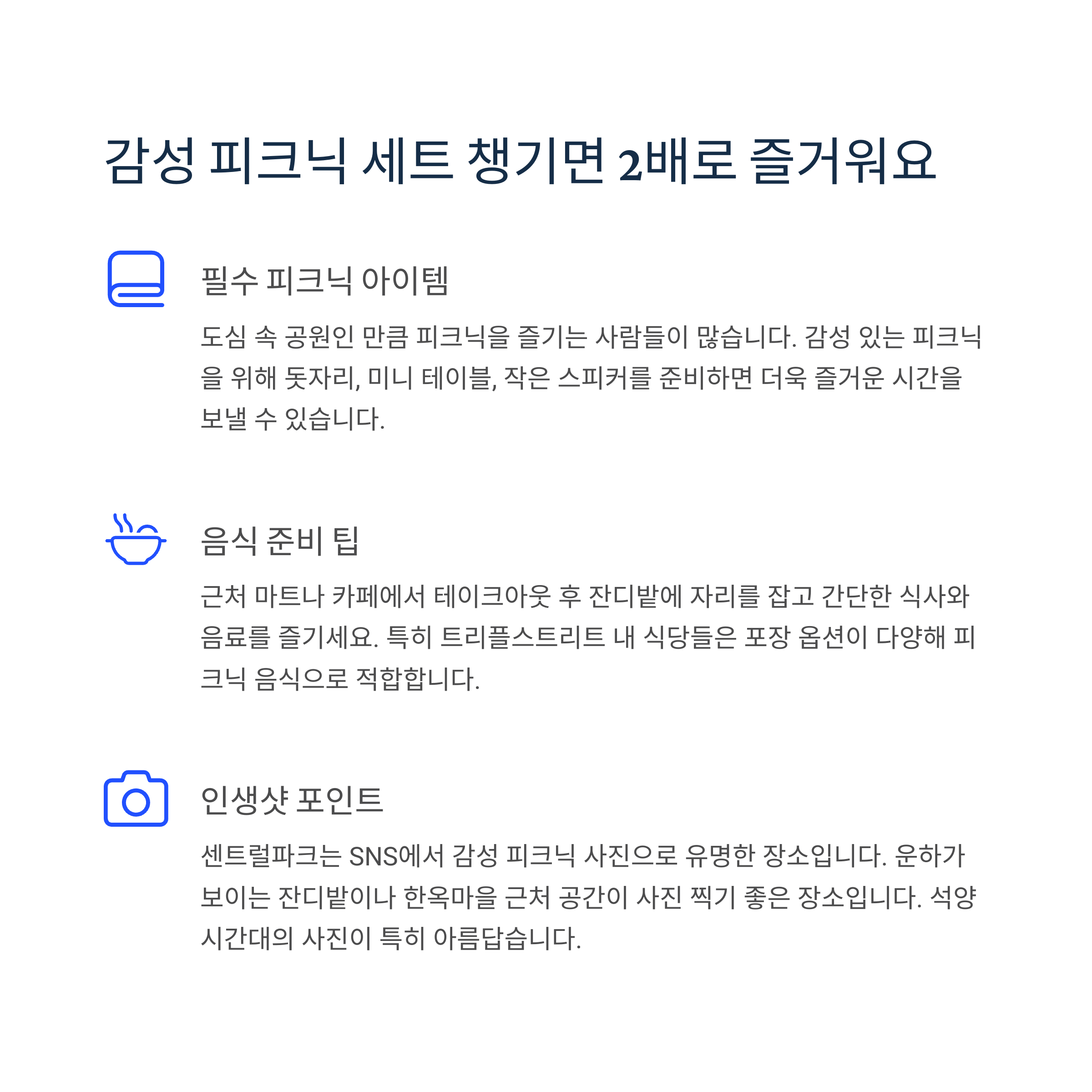SNS에서는 감성 피크닉 사진으로 유명한 장소이기도 합니다.