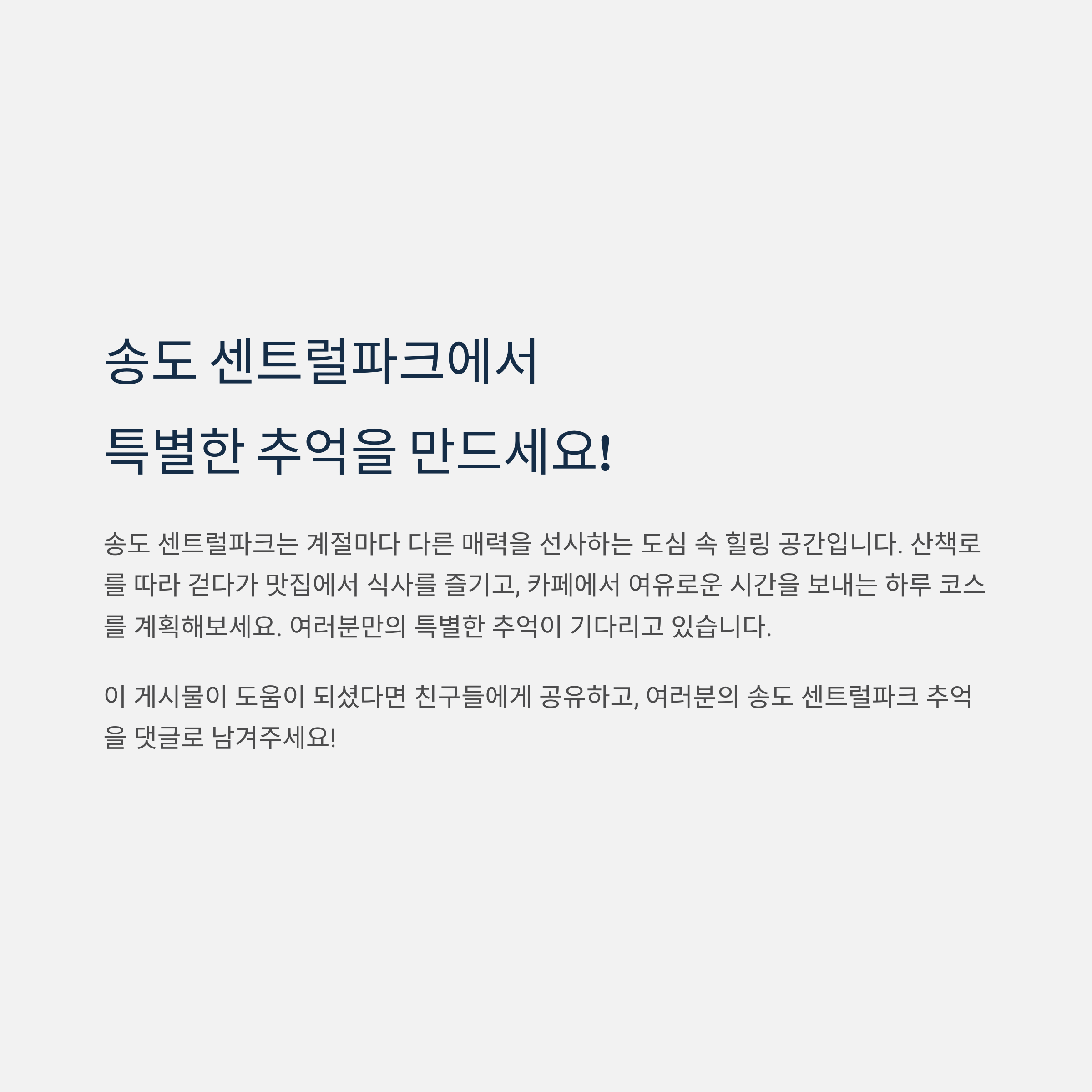 센트럴파크부터 송도의 감성 맛집까지, 어디서 어떻게 즐길까?