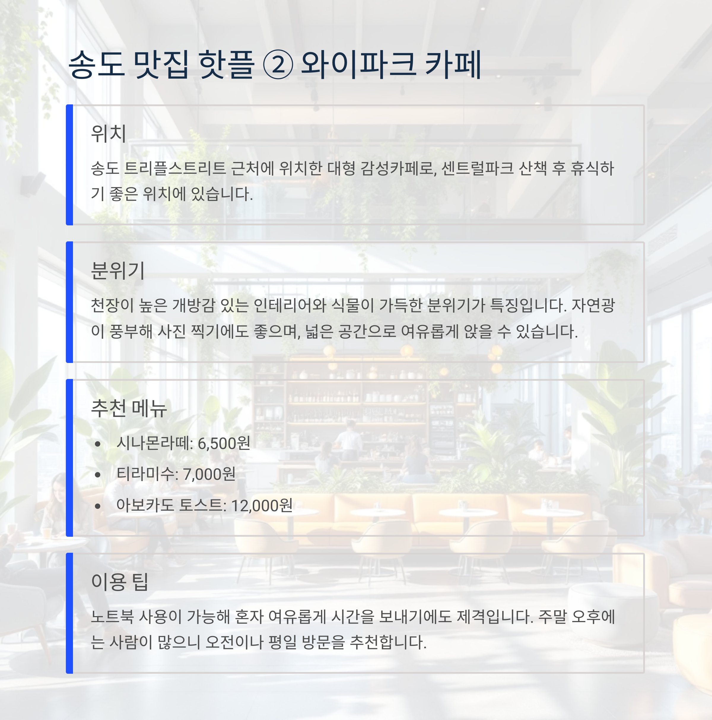 | 와이파크 카페 | 트리플스트리트 맞은편 | 감성 인테리어 |