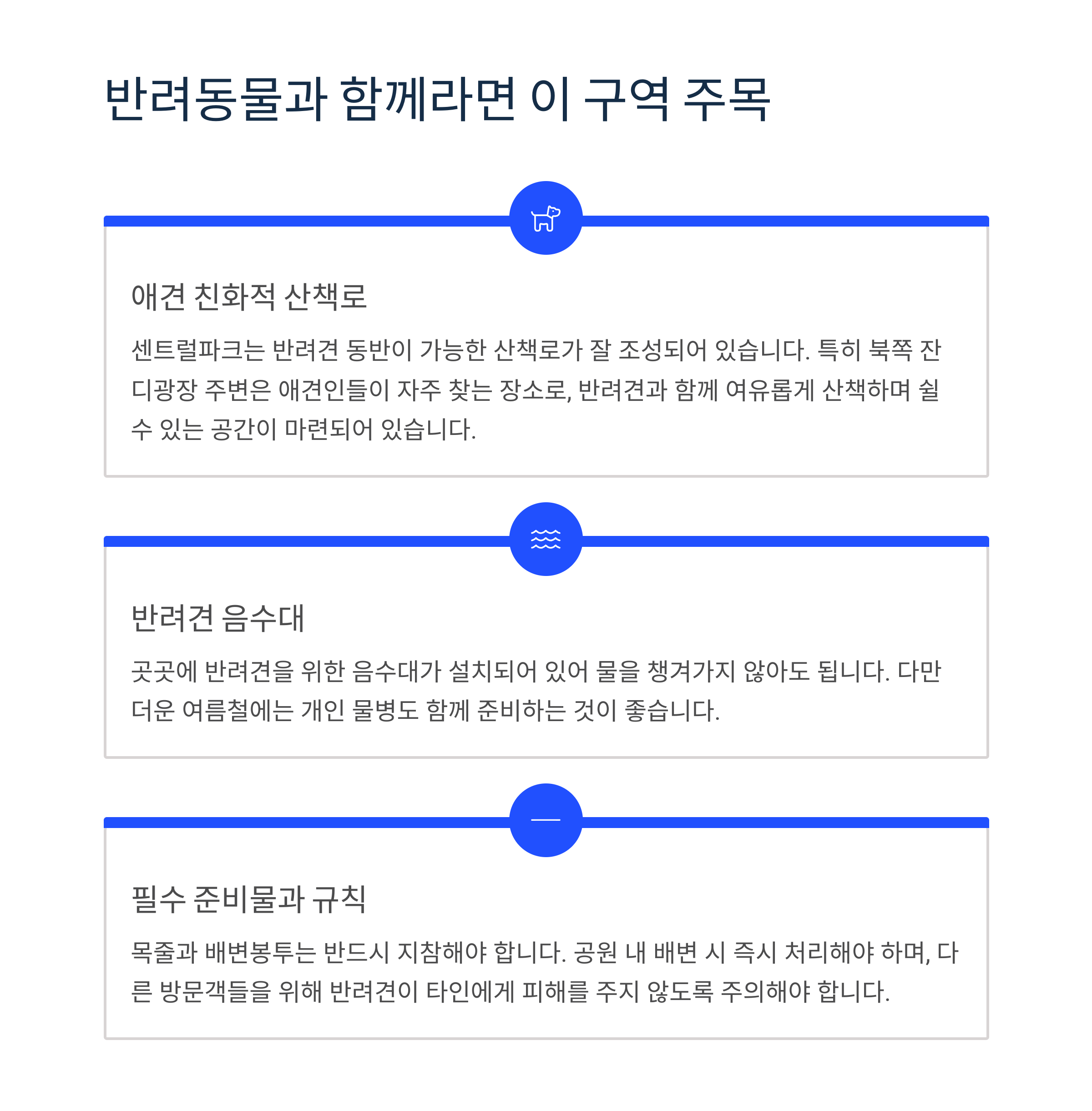 센트럴파크는 반려견 동반이 가능한 산책로도 조성되어 있습니다.