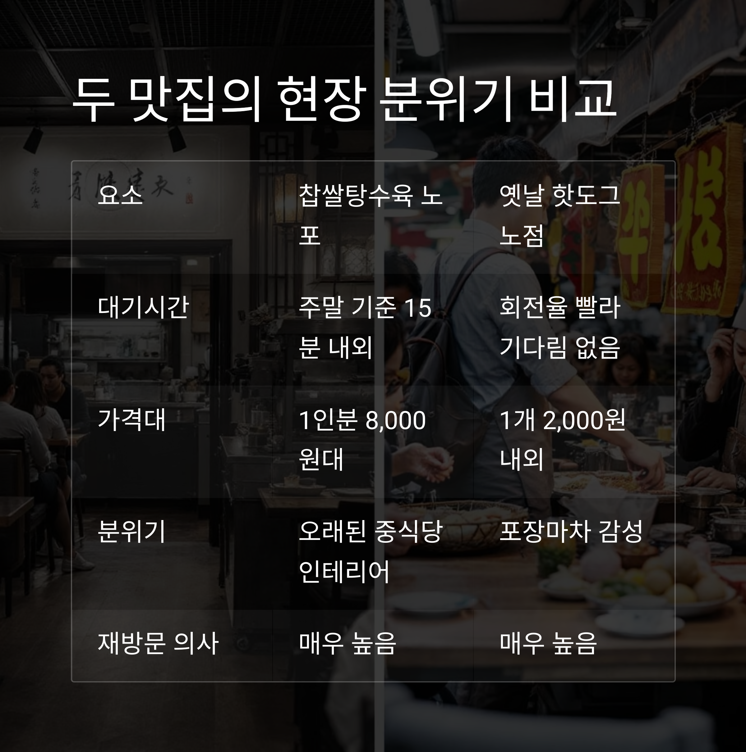각 가게의 특징과 현장 분위기까지 생생하게 담아보았습니다.