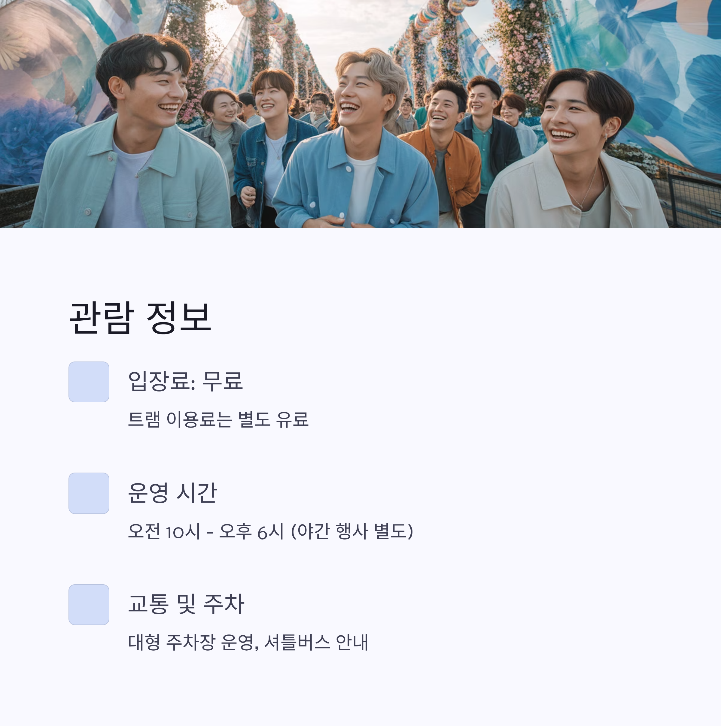 - 운영 시간: 오전 10시부터 오후 6시까지 (야간 행사 별도 운영)