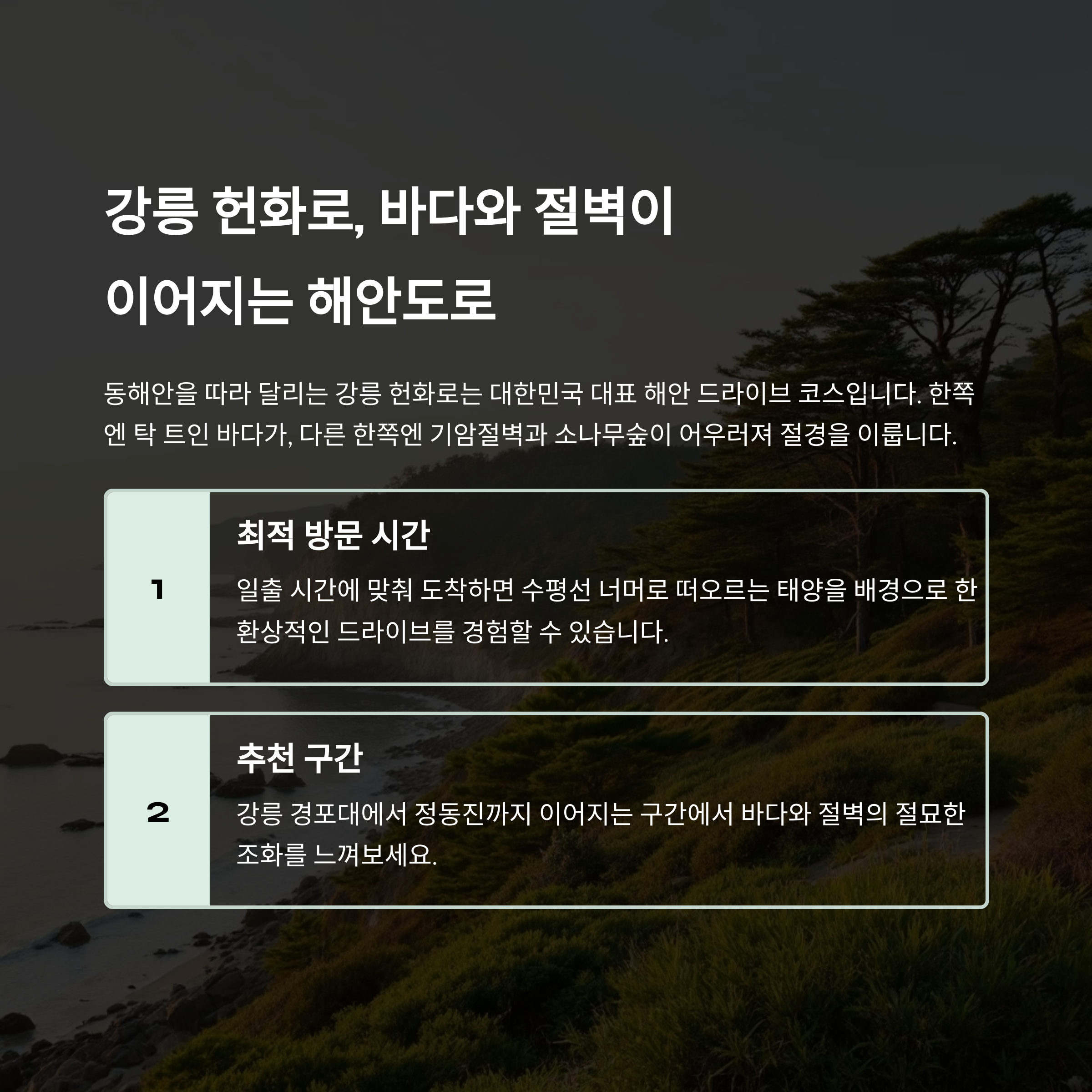 | 강릉 헌화로 | 해안 절경, 일출 포인트 |