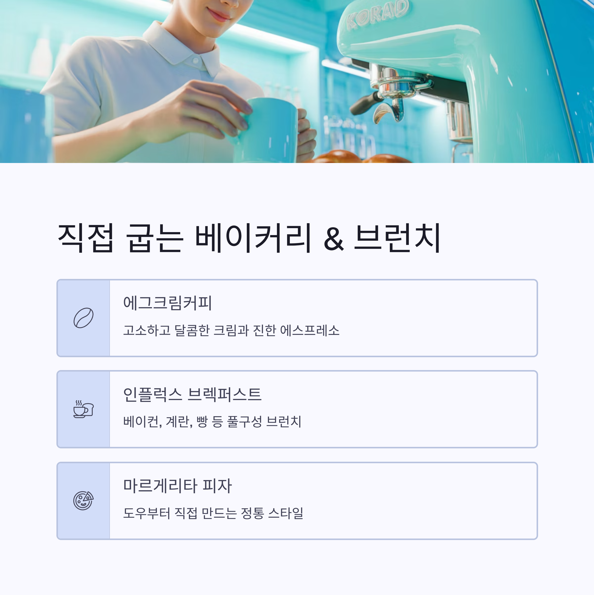 매일 구워내는 빵과 함께, 브런치 메뉴인